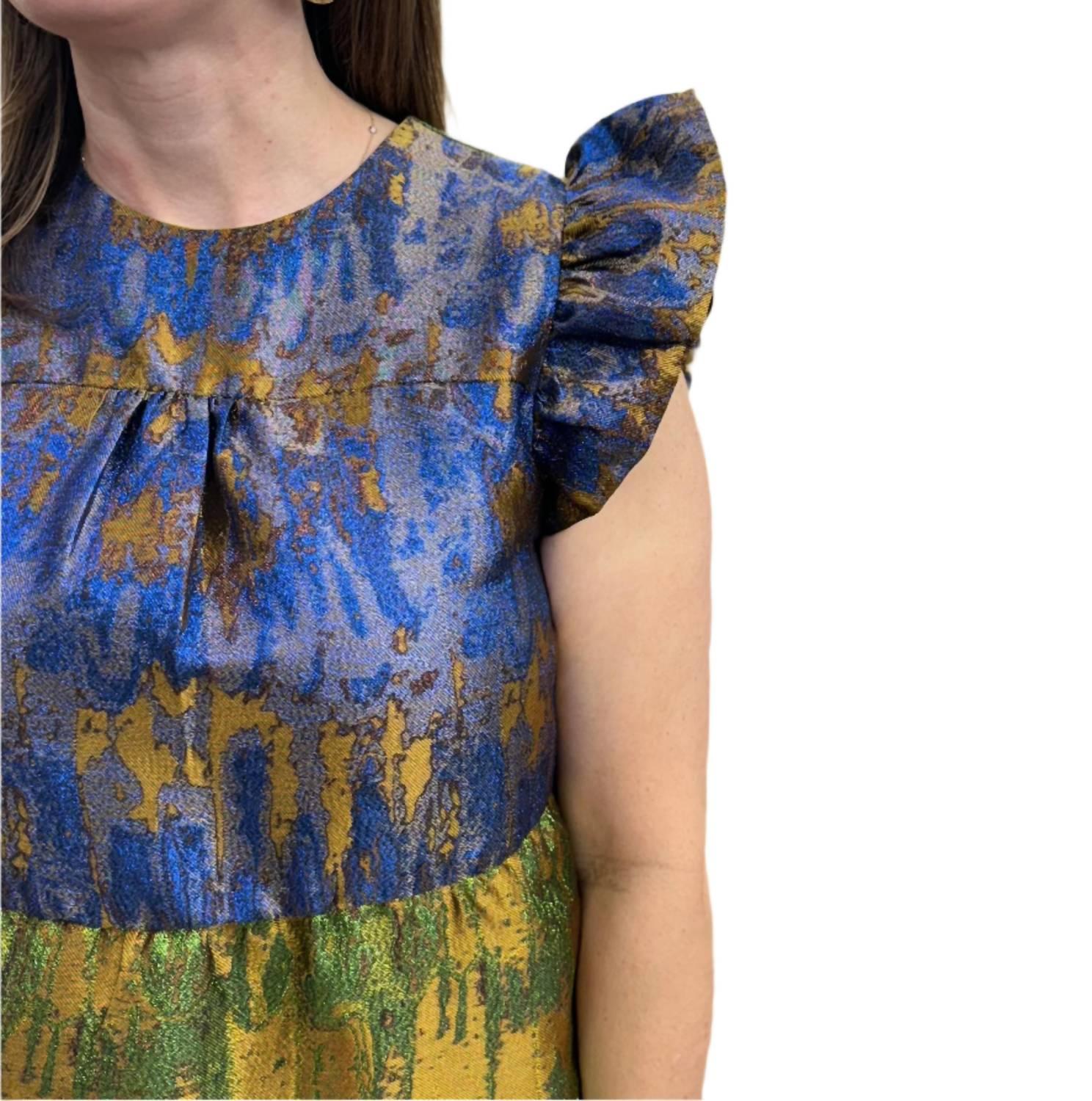 Платье с расклешенными рукавами в металлическом синем THML