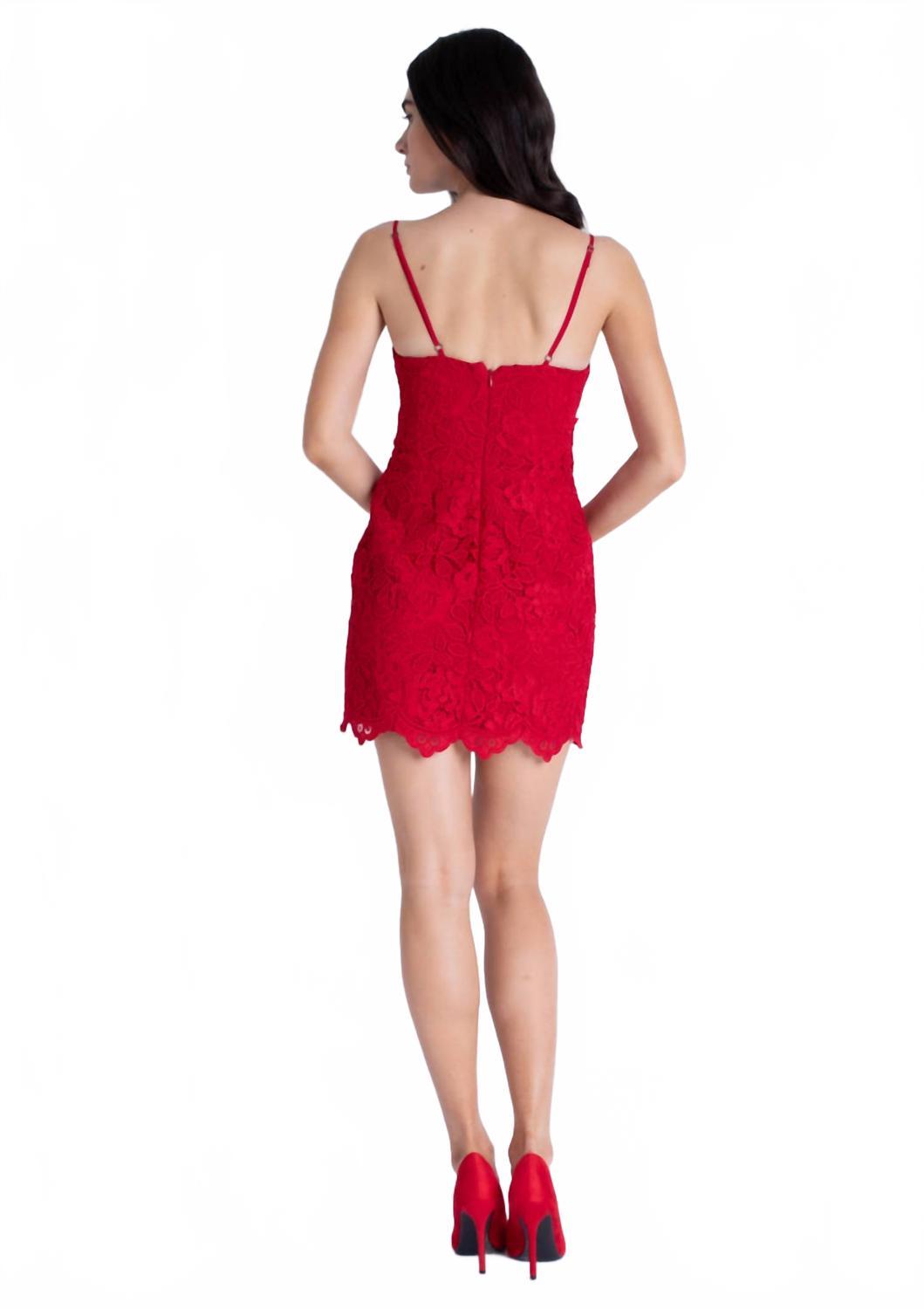 Свободное и элегантное платье, к которому вы будете стремиться весь сезон. Окунитесь в элегантность с мини-платьем Taylor от Karina Grimaldi пленительного рубиново-красного цвета, созданным для женщин, которые ценят игривость и изысканность. Это мини-платье с изящными бретельками и соблазнительным вырезом в форме сердечка, который красиво обрамляет ваше декольте. Платье выполнено из высококачественного кружева с изысканной отделкой, имеет шикарный фестончатый подол и надежную застежку-молнию. Для сохранения великолепного внешнего вида рекомендуется только химчистка. Идеально подходит для годовщины или гламурного Дня святого Валентина.