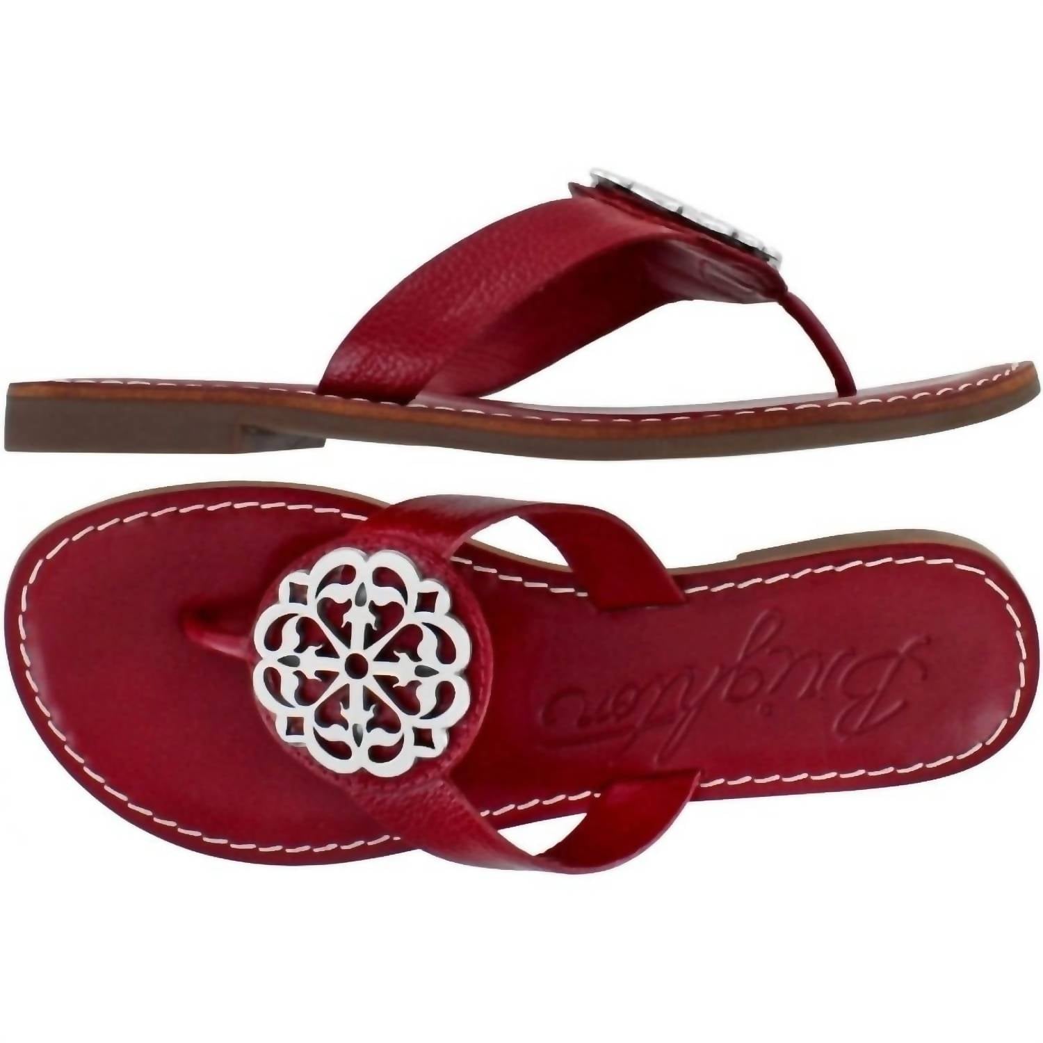 Струящиеся платья, укороченные брюки и даже комбинезоны... эти сандалии подойдут ко всему! Вступите в весну уверенно с женскими сандалиями Ariana Flat Sandal от Brighton в ярком оттенке Lipstick. Эти сандалии, искусно изготовленные из высококачественной кожи, отличаются элегантным открытым носком и фирменным орнаментом Ferrara, дополненным посеребренной фурнитурой для дополнительной элегантности. Плоский каблук высотой 1,2 см идеально подходит для повседневной носки и вечерних мероприятий, что делает их идеальными как для бранча, так и для пасхального вечера. Эти сандалии, созданные для модниц, сочетают в себе роскошь и долговечность.