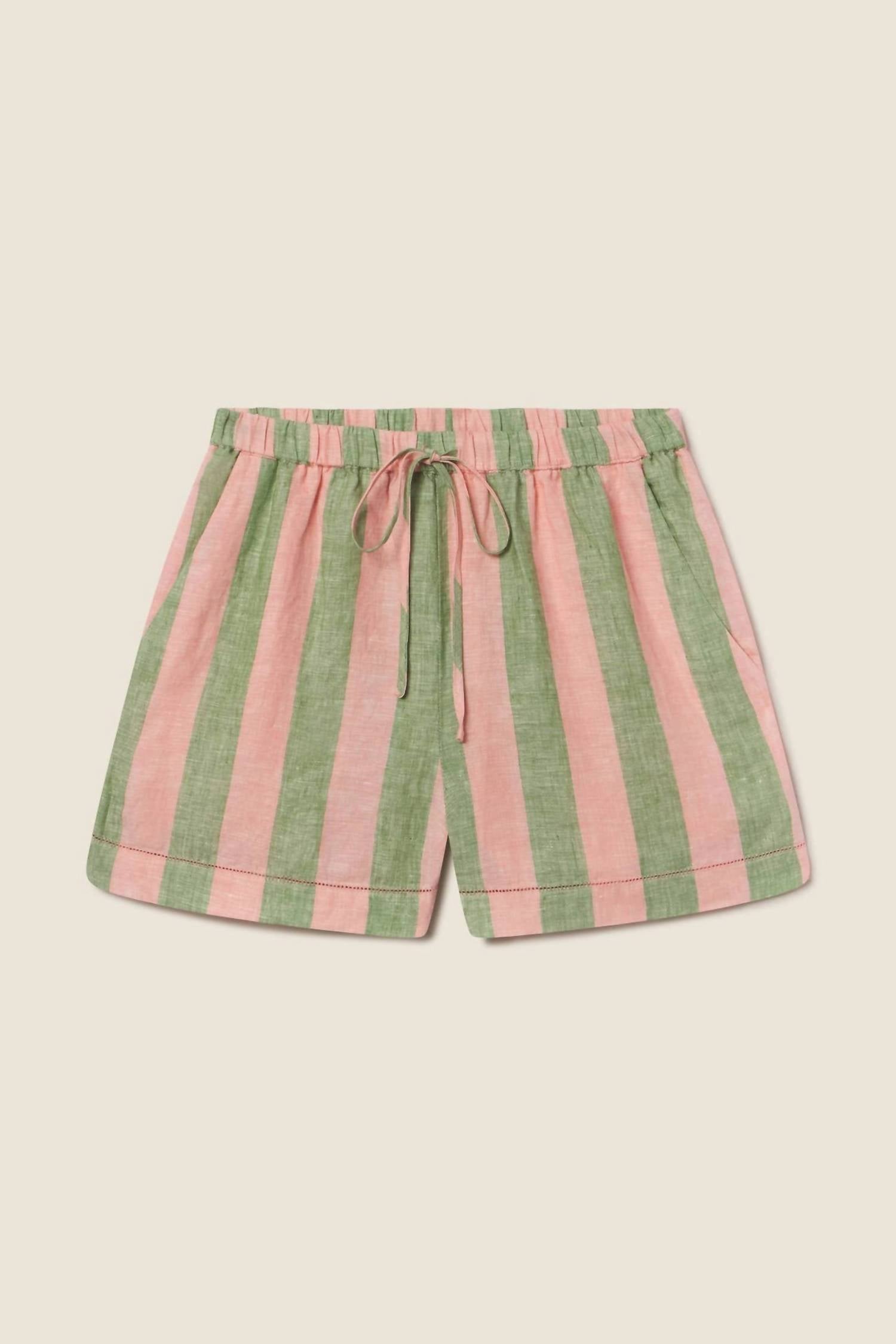 Заправьте любимую футболку в эти шорты с высокой талией, чтобы создать более непринужденный и стильный образ. Представляем шорты Charlie Stripe Short от TROVATA - незаменимую вещь в стиле бохо-шик, идеально подходящую для вашего летнего гардероба. Эти шорты с высокой талией в яркую арбузную полоску облегают бедра до середины бедра и имеют классический прямой крой. Изготовленные из 100% льна, они оснащены узким шнурком, поясом и потайной резинкой для идеальной посадки, а также практичными карманами. Они удобны в носке, имеют застежку-липучку и подходят для машинной стирки; сушить их можно, просто разложив на горизонтальной поверхности.