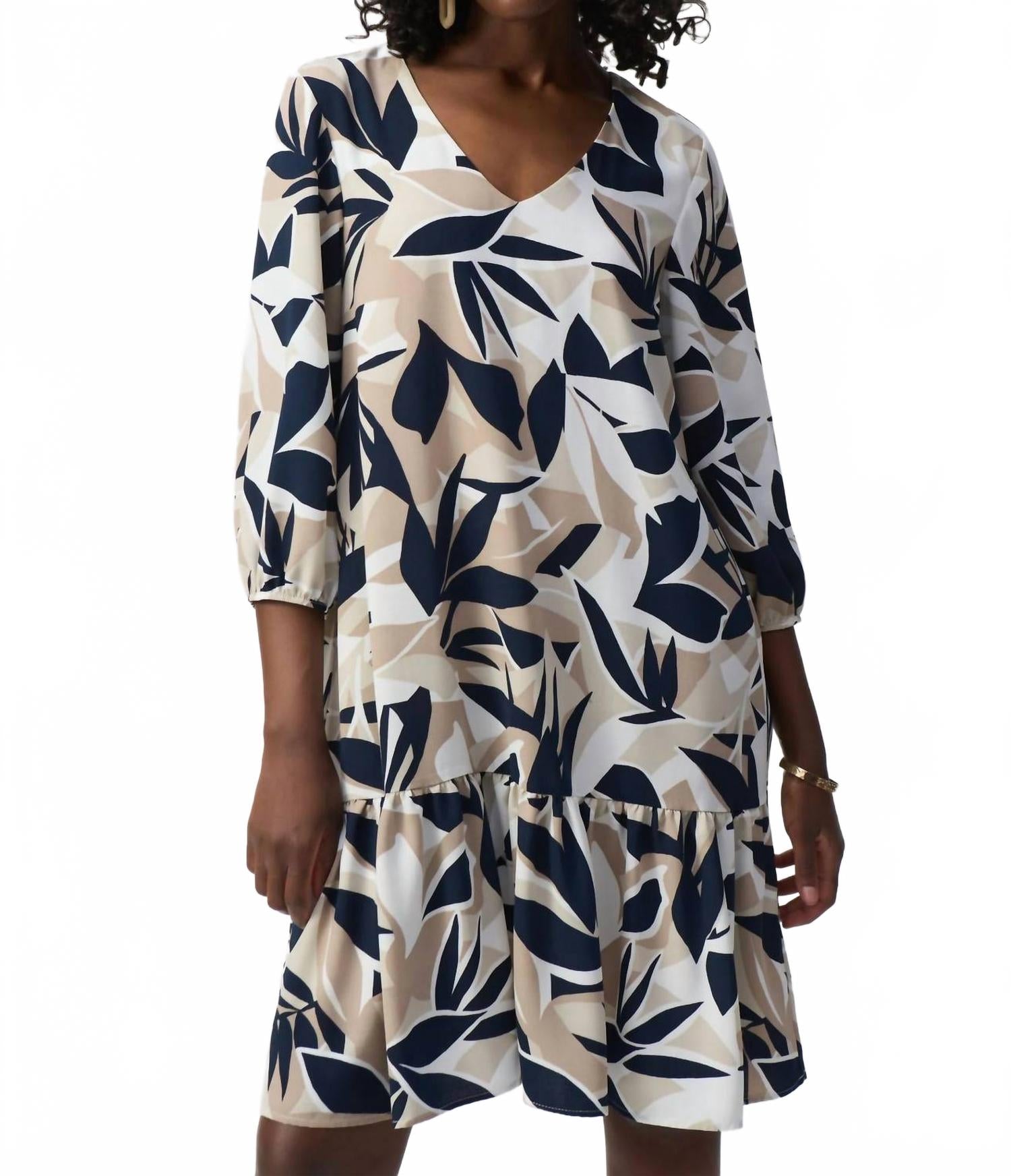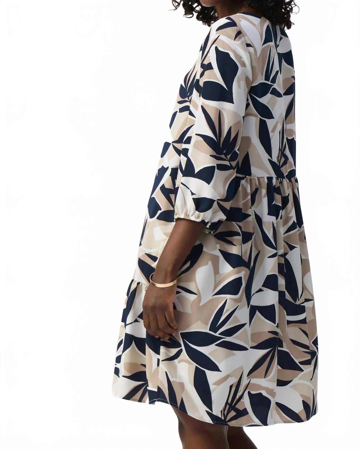 Leaf Print Puff Sleeve Trapeze Dress In Vanilla/multi Joseph Ribkoff