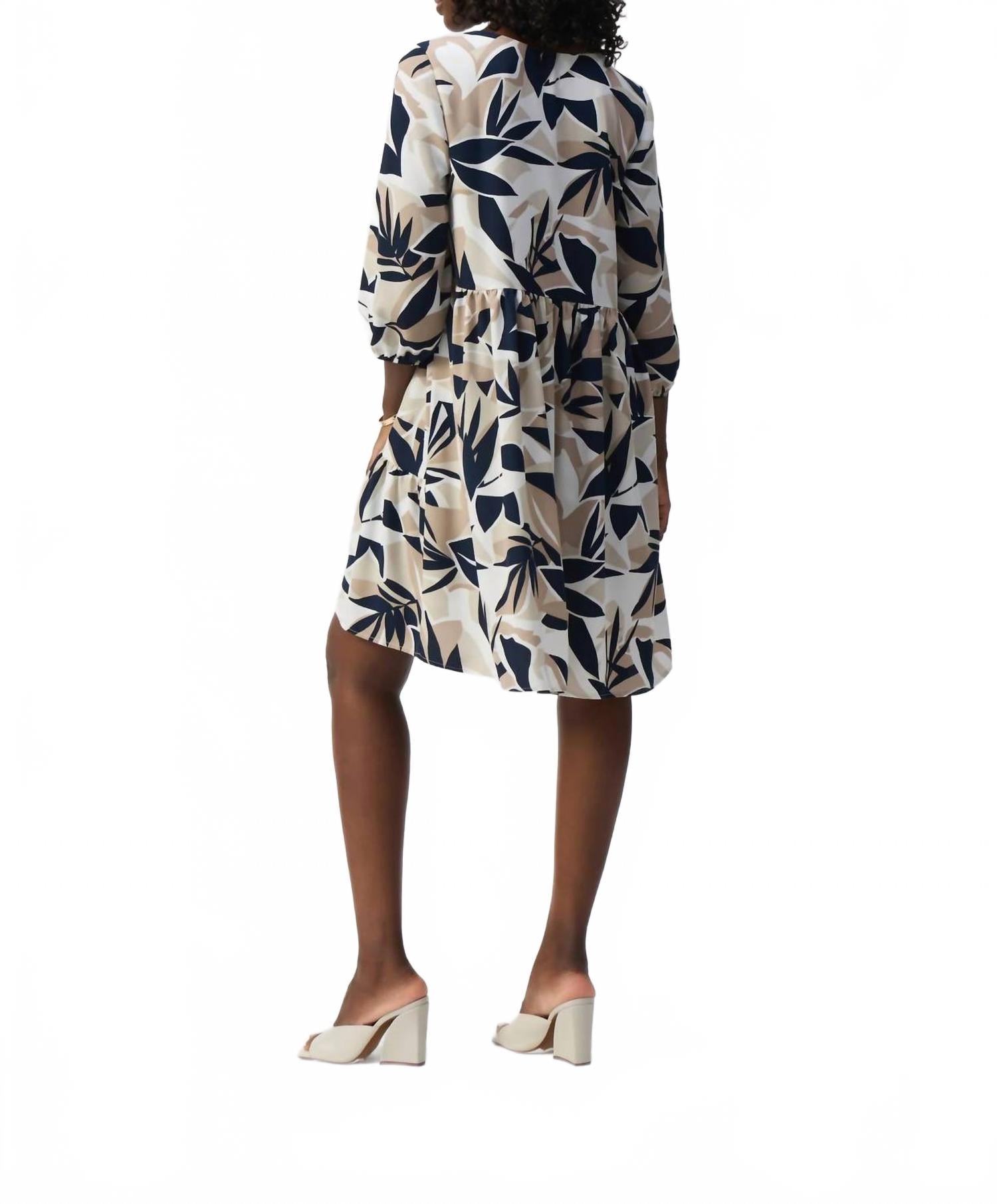 Leaf Print Puff Sleeve Trapeze Dress In Vanilla/multi Joseph Ribkoff 8 968₽