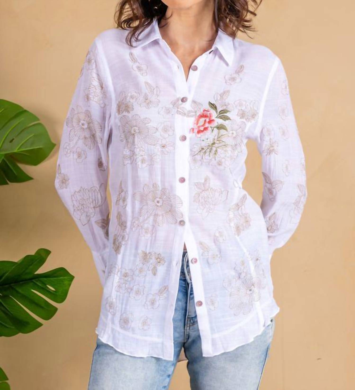 Сочетайте ее с любимыми джинсами и шлепанцами для следующего девичника. Откройте для себя женскую вышитую блузку PAPARAZZI - потрясающее дополнение к вашему гардеробу для отпуска в винтажном эклектичном стиле. Эта модель с длинными рукавами выполнена из роскошной вискозной ткани с романтичной контрастной вышивкой и цветочными деталями спереди, сзади, на воротнике и рукавах. Блузка также имеет застежку на пуговицы, воротник, широкие разрезы на манжетах и ​​закругленный край с кромкой из морской шерсти. Инструкции по уходу не предоставляются, поэтому вы сами можете решить, как ухаживать за этой незаменимой летней вещью в уличном стиле.