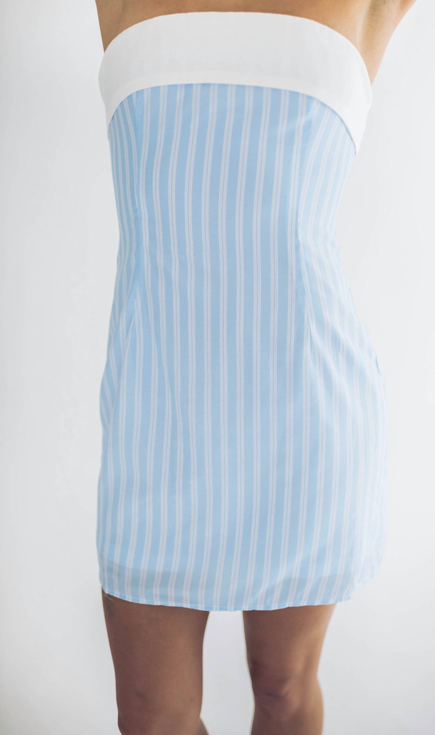 Комфортное и элегантное платье, которое вы будете носить круглый год. Представляем мини-платье Alma Strapless Mini Dress от Falcon Park - незаменимый предмет гардероба на лето, гармонично сочетающий в себе классический и современный стиль. Платье выполнено в облегающем силуэте с вырезом без бретелек и открытыми плечами. Платье полностью на подкладке для дополнительного комфорта. Платье выполнено из хлопковой смеси, украшено синими и белыми полосками и элегантным контрастным белым отворотом. Для удобства платье застегивается на молнию сзади. На модели размер S (рост 168 см, обхват груди 88 см, обхват талии 65 см, обхват бедер 91 см).