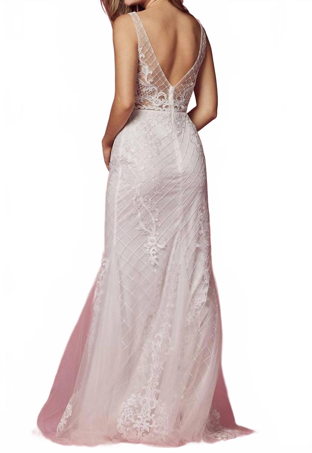 Привлеките всеобщее внимание в этом очаровательном свадебном платье с прозрачным тюлевым верхом, украшенным изысканной вышивкой и изящной вышивкой бисером. Платье имеет прозрачный V-образный вырез на мягкой подкладке в форме сердечка и прозрачный V-образный вырез на спине с застежкой-молнией. Платье имеет облегающий силуэт «русалка» и плавно переходит в изящный шлейф, идеально подходящий для романтического и незабываемого выхода.