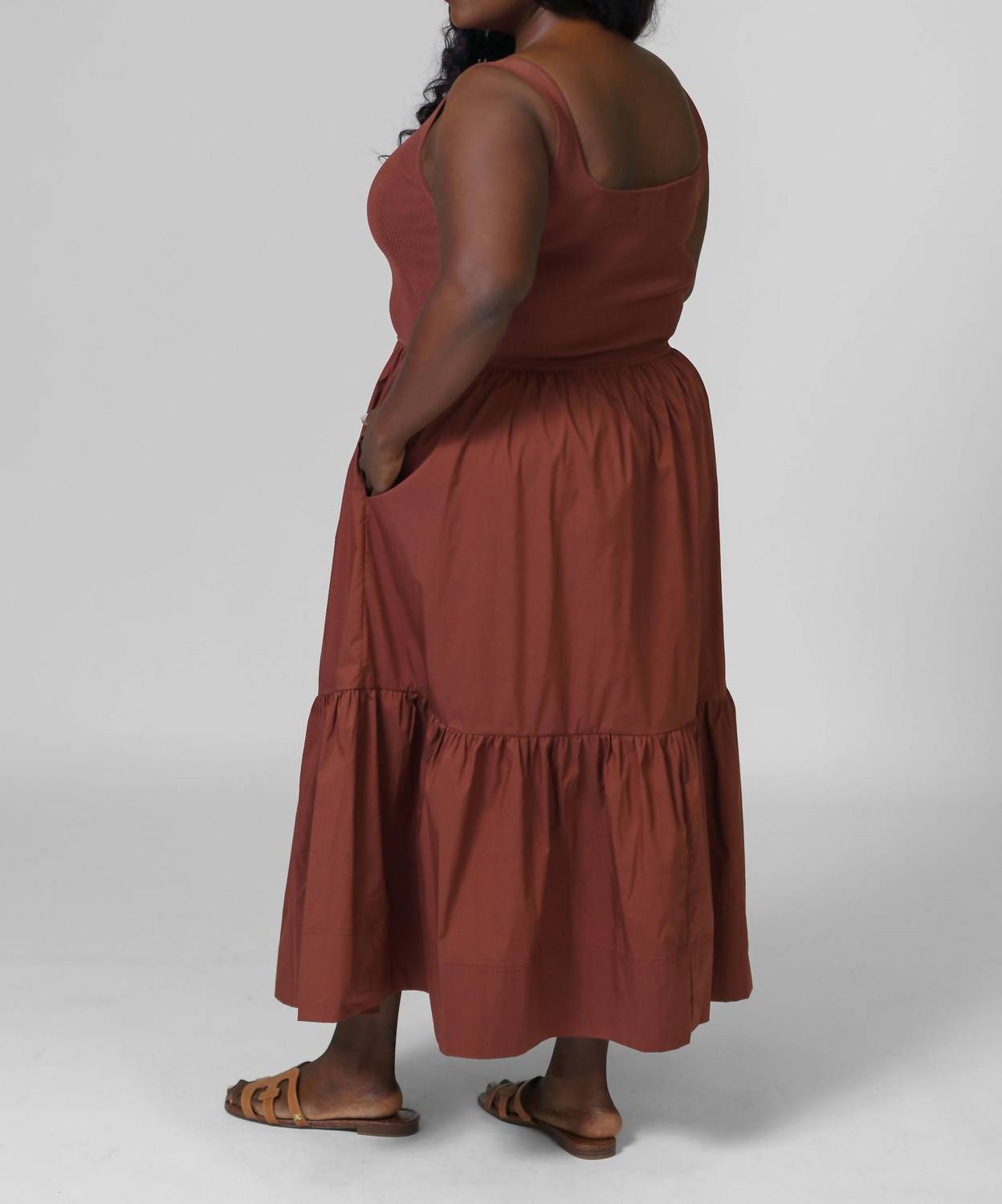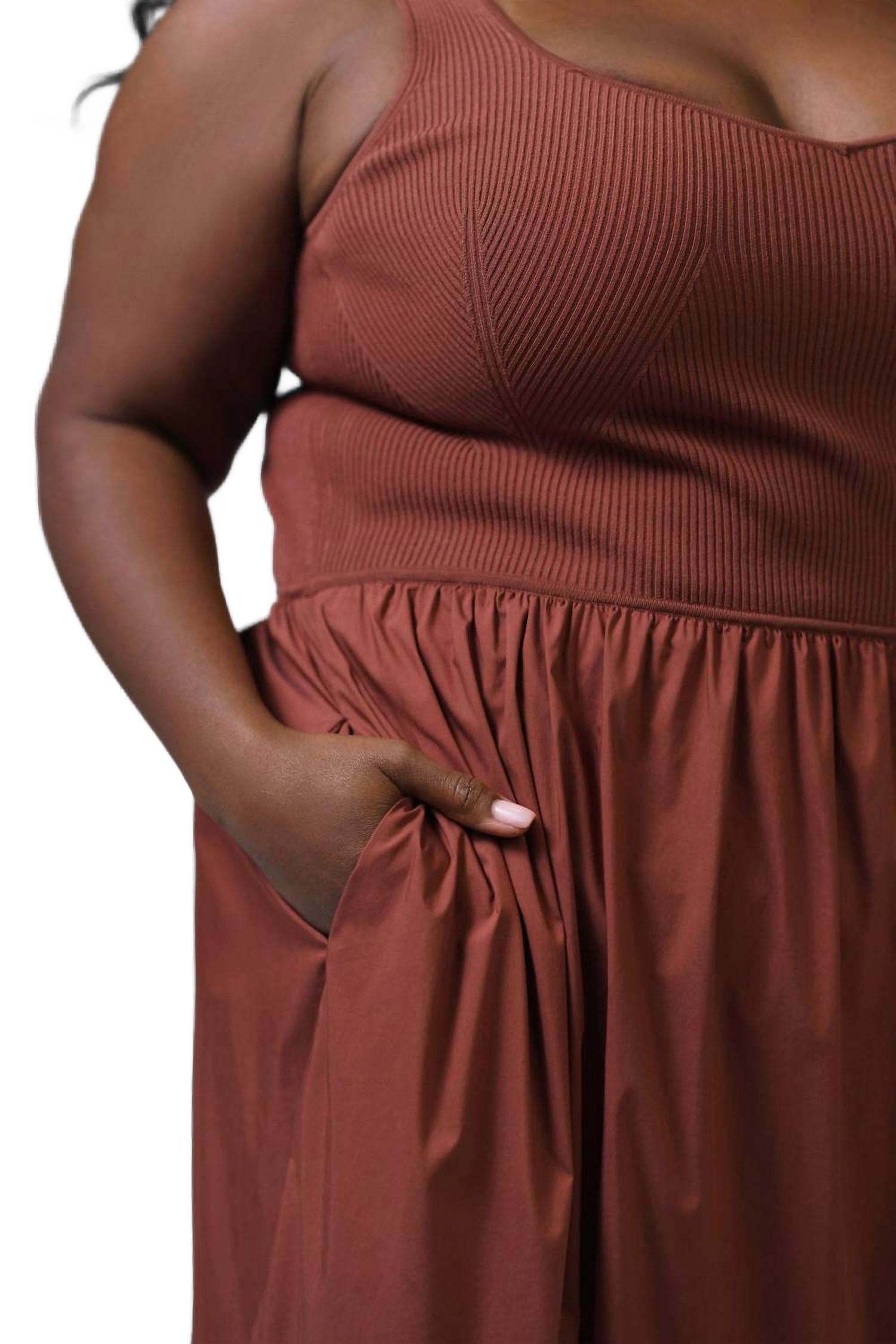 Кто не любит хорошее макси-платье? Это платье вы будете носить сезон за сезоном. Представляем платье Josephina от TANYA TAYLOR - идеальное сочетание стиля и комфорта в насыщенном оттенке «Корица». Это макси-платье без рукавов имеет текстурированный А-силуэт с облегающим трикотажным лифом и легкой юбкой, что делает его идеальным как для повседневной носки, так и для вечернего ношения. Универсальный, подчеркивающий фигуру крой дополнен практичными карманами, застежкой-липучкой для легкого надевания и элегантным V-образным вырезом. Обратите внимание, что для этого платья plus-size не предусмотрены особые рекомендации по стирке и сушке.