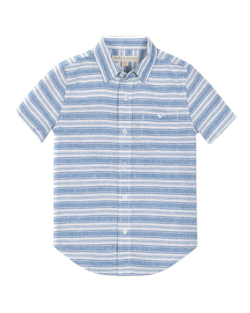 Представляем льняную рубашку Hope & Henry на пуговицах для мальчиков от известного бренда HOPE & HENRY. Эта стильная рубашка выполнена в синей льняной расцветке с пестрым узором, имеет левый нагрудный карман и небольшой холщовый лейбл с логотипом на внутренней планке для пуговиц. Рубашка изготовлена ​​из смеси 55% льна и 45% органического хлопка, она удобная и экологичная. Застежка на пуговицах спереди добавляет нотку изысканности, делая ее идеальным вариантом для любого случая. Рубашка импортного производства, которую можно стирать в стиральной машине, станет незаменимым аксессуаром в гардеробе любого молодого джентльмена.