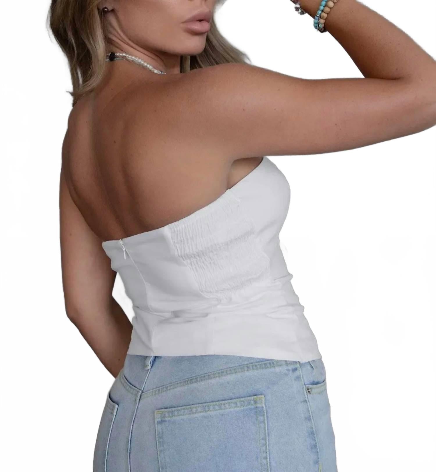 Представляем топ Winnie Button Down от TIC TOC - шикарное дополнение к вашему весеннему гардеробу. Эта модель без бретелек с открытыми плечами выполнена из однотонной белой ткани с принтом POPPIE, придающей ей винтажный вид. Изготовлена из смеси вискозы (96% вискозы и 4% спандекса) и обеспечивает свободную посадку благодаря легкому эластичному материалу. Подкладка из 100% полиэстера обеспечивает дополнительный комфорт. Застежка-молния расположена по центру спины и сбоку. Подходит для машинной стирки. На модели рост 178 см, размер груди 180 см. Размер талии/талии 90 см.