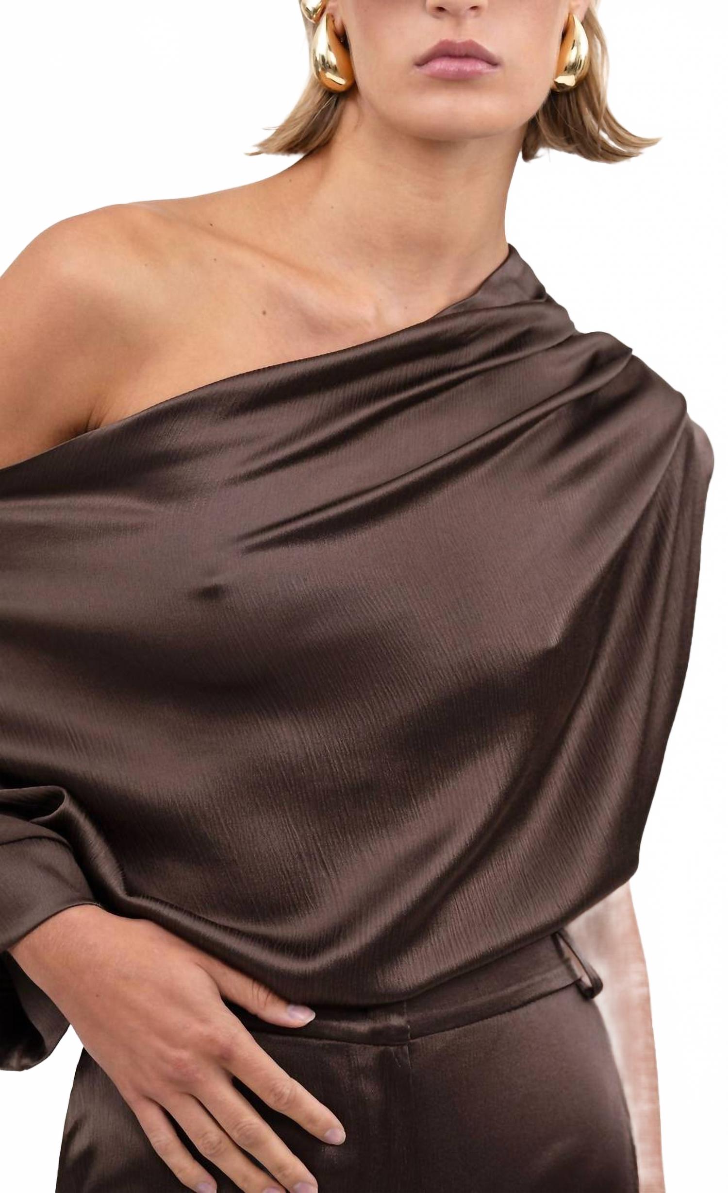 Сочетайте его с любимыми джинсами и шлепанцами для следующего девичника. Представляем Kenzie Top от Nonchalant Label - шикарную блузку с длинными рукавами насыщенного шоколадного оттенка. Эта модель на одно плечо создает элегантный и изысканный образ, идеально подходящий как для повседневных прогулок, так и для торжественных мероприятий. Наслаждайтесь удобством надевания благодаря застежке-липучке и следуйте моде на сдержанную роскошь с этим однотонным изделием. Kenzie Top идеально подходит для летних случаев и прекрасно сочетается с различными вариантами нижнего белья или подходящими брюками Pauline, создавая полноценный ансамбль.