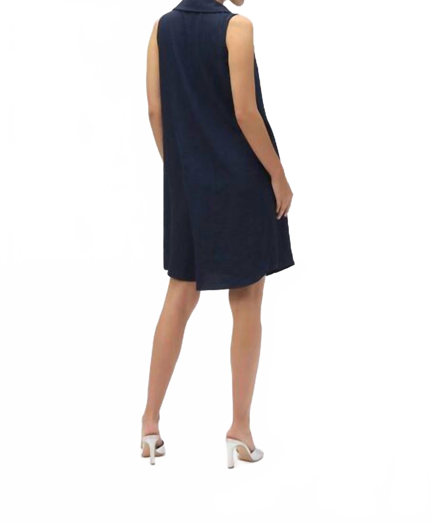 Откройте для себя непринужденную изысканность в платье цвета «Полуночный синий». Платье без рукавов длиной до колена. Изготовлено из 98% полиэстера и 2% спандекса. Комфорт и стиль без ущерба для универсальности. Изящный воротник без молнии, застежка на пуговицы и практичные боковые карманы создают изысканный, но функциональный образ. Платье не мнется и удобно брать с собой в дорогу. Уход минимальный - достаточно стирать вручную в холодной воде и сушить на горизонтальной поверхности, чтобы оно стало неотъемлемой частью любого современного гардероба. На модели рост 175 см, размер 6.