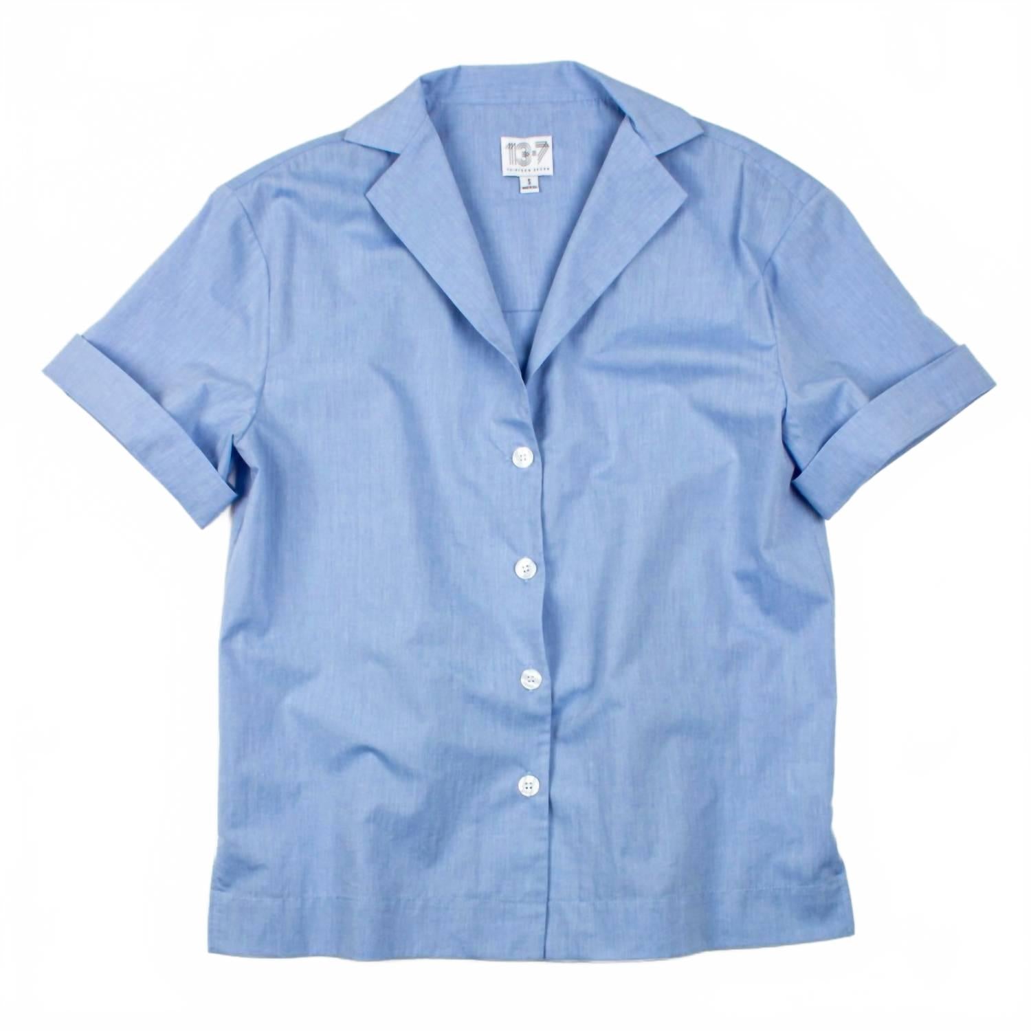 Представляем рубашку Fancy Bowler от Thirteen Seven - элегантную интерпретацию классической рубашки для боулинга, идеально подходящую для вашего стильного гардероба. Эта рубашка с короткими рукавами изготовлена из 100% хлопка и оснащена потайной застежкой на пуговицы для элегантной посадки без зазоров. Модель выполнена в однотонном синем цвете Little Boy Blue, имеет характерные воротники с лацканами и две складки сзади для дополнительной элегантности. Уход за этой стильной рубашкой прост: машинная стирка и сушка на веревке - это гарантирует легкий уход.