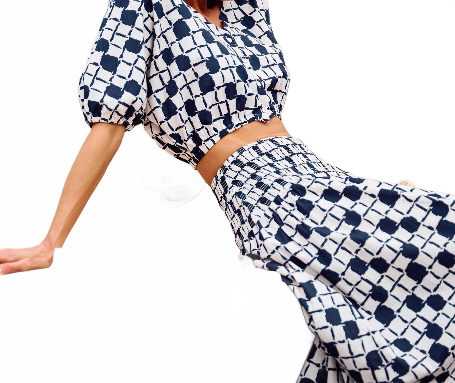 Идеальный укороченный топ для теплой погоды. Добавьте нотку элегантности в свой гардероб с топом Helena от Cleobella с ярким геометрическим принтом из Сан-Марино. Этот женский укороченный топ изготовлен из 100% органического хлопкового поплина, сертифицированного GOTS, и изготовлен вручную в Индии с соблюдением этических норм, что гарантирует экологичность. Топ отличается короткими рукавами-фонариками и укороченным силуэтом, подчеркивающим фигуру, а также имеет округлый вырез спереди и V-образный вырез сзади. Уход: ручная стирка и сушка в разложенном виде на горизонтальной поверхности или химчистка. На Ане (рост 175 см) размер S.