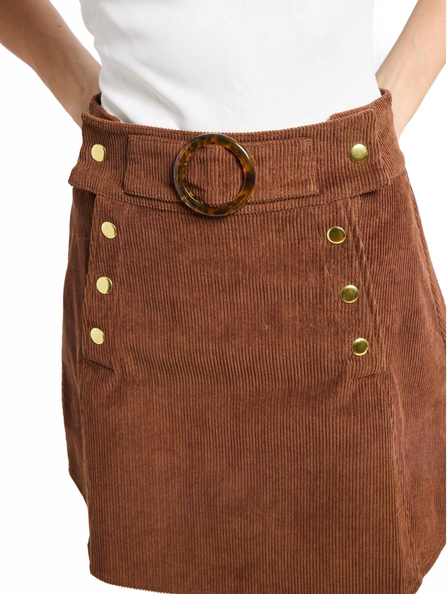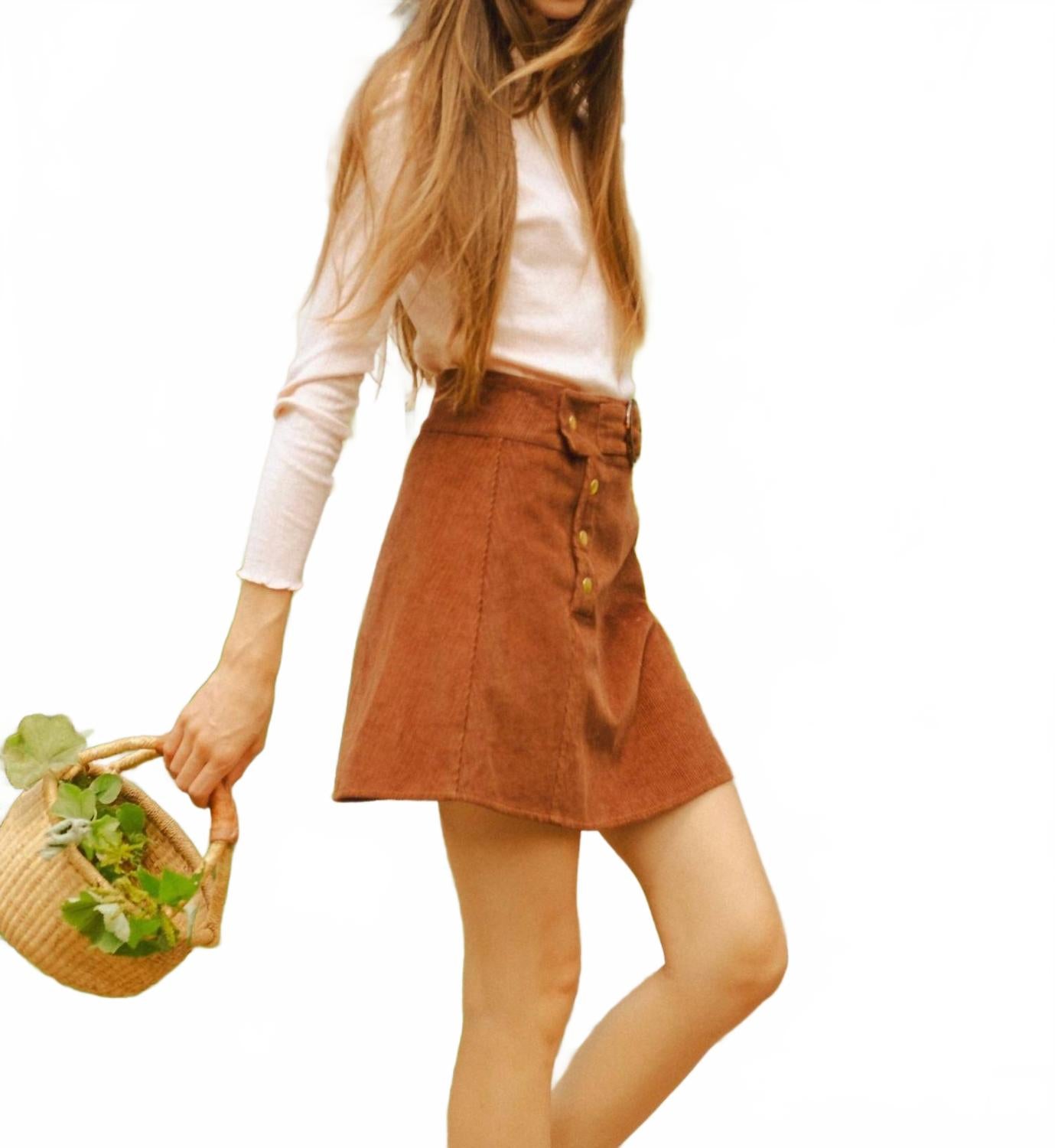 Украсьте свой осенний гардероб мини-юбкой Lorelei от MILLE, которая выгодно подчеркивает фигуру благодаря легкому А-образному силуэту в очаровательном цвете Coffee Cord. Юбка изготовлена ​​из 100% хлопка, без подкладки для комфорта и застегивается на кнопку спереди, украшенную поясом с круглой латунной пряжкой. Юбка создана в минималистичном стиле и идеально подходит для празднования Дня благодарения. Инструкции по уходу: машинная стирка и сушка в стиральной машине для легкого ухода. Доступные размеры: S (длина: 17,25 дюйма, талия: 29,5 дюйма), M (длина: 17,75 дюйма, талия: 31,5 дюйма), L (длина: 18,25 дюйма, талия: 33,5 дюйма).