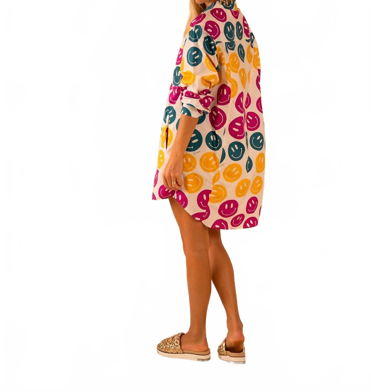 Пресли Поплин Платье-рубашка - Узор Смайлики Мультиколор Care Tucker