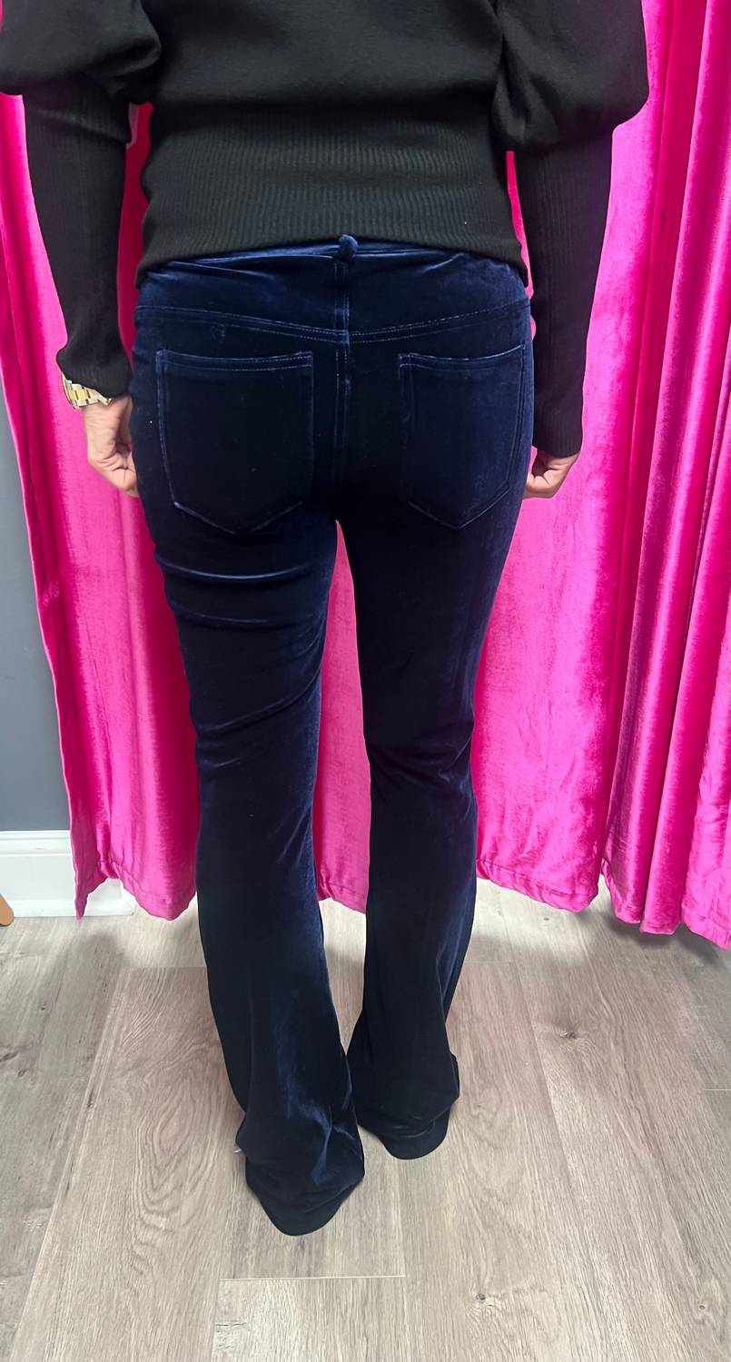 Бархатные облегающие расклешенные брюки в темно-синем цвете BIANCO