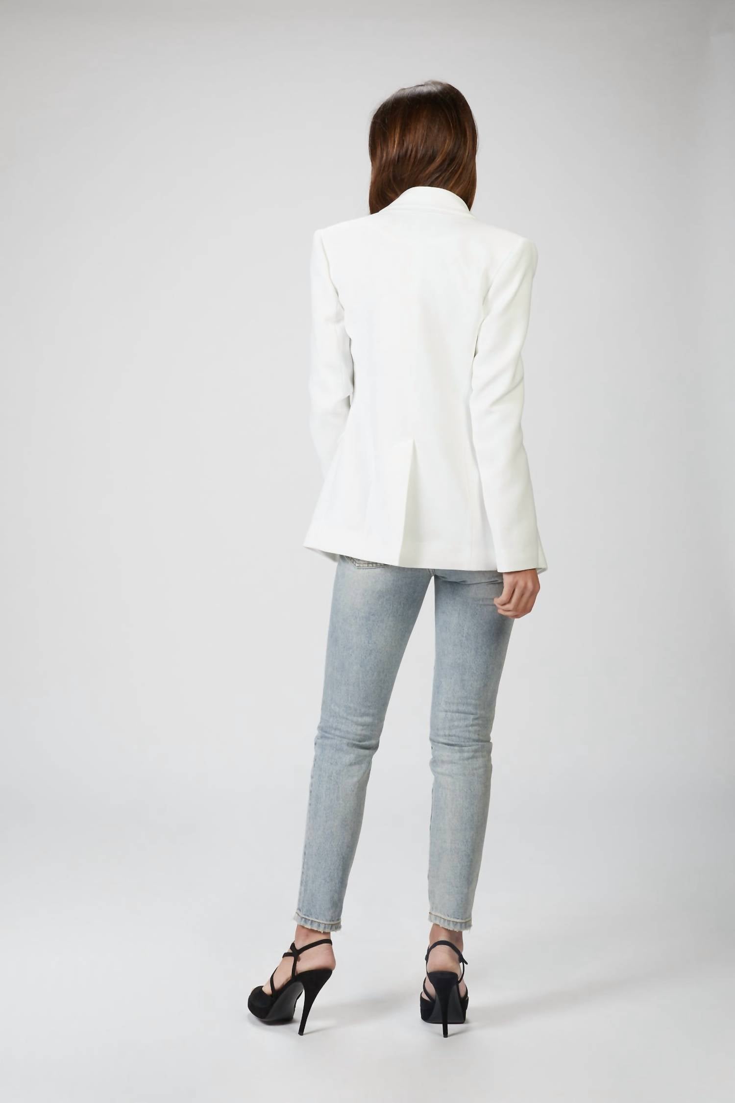Креповый блейзер «Kim» от In The Mood For Love - образец современного кроя. Эта классическая модель с слегка приспущенными плечами и острым воротником, как у смокинга, выполнена в белоснежном цвете, который делает ее особенной. Сочетайте ее с брюками в тон или любого другого оттенка, ведь этот универсальный стиль легко выходит за рамки трендов и сезонов.