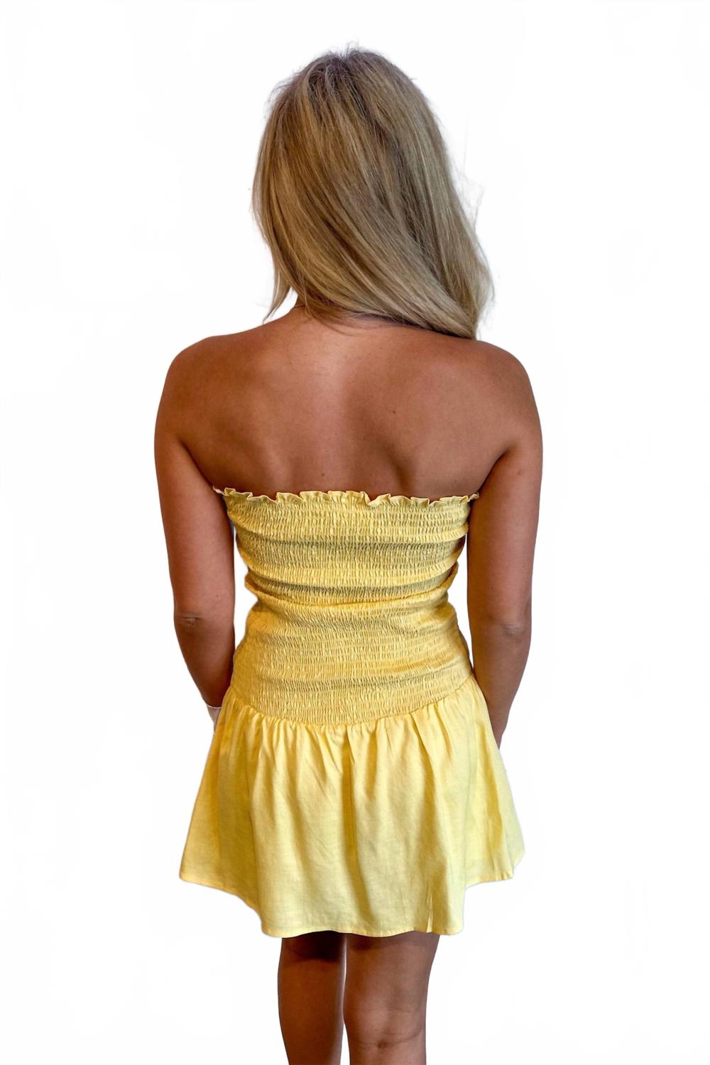 Свободное и элегантное платье, которое вы будете носить круглый год. Платье Three Wishes Smocked от Cotton Candy - очаровательный летний аксессуар без бретелек, создающий восхитительный образ в стиле бохо-шик. Это женское платье однотонного желтого цвета с А-образным силуэтом и струящейся многоярусной юбкой. Изготовлено из смеси льна (50% льна и 50% вискозы) и обеспечивает комфортную посадку благодаря полностью собранному лифу и застежке на липучке. Уход: ручная стирка в холодной воде, сушка на веревке и глажка при низкой температуре для сохранения естественного очарования. Идеально подходит для отпуска и неформальных прогулок.