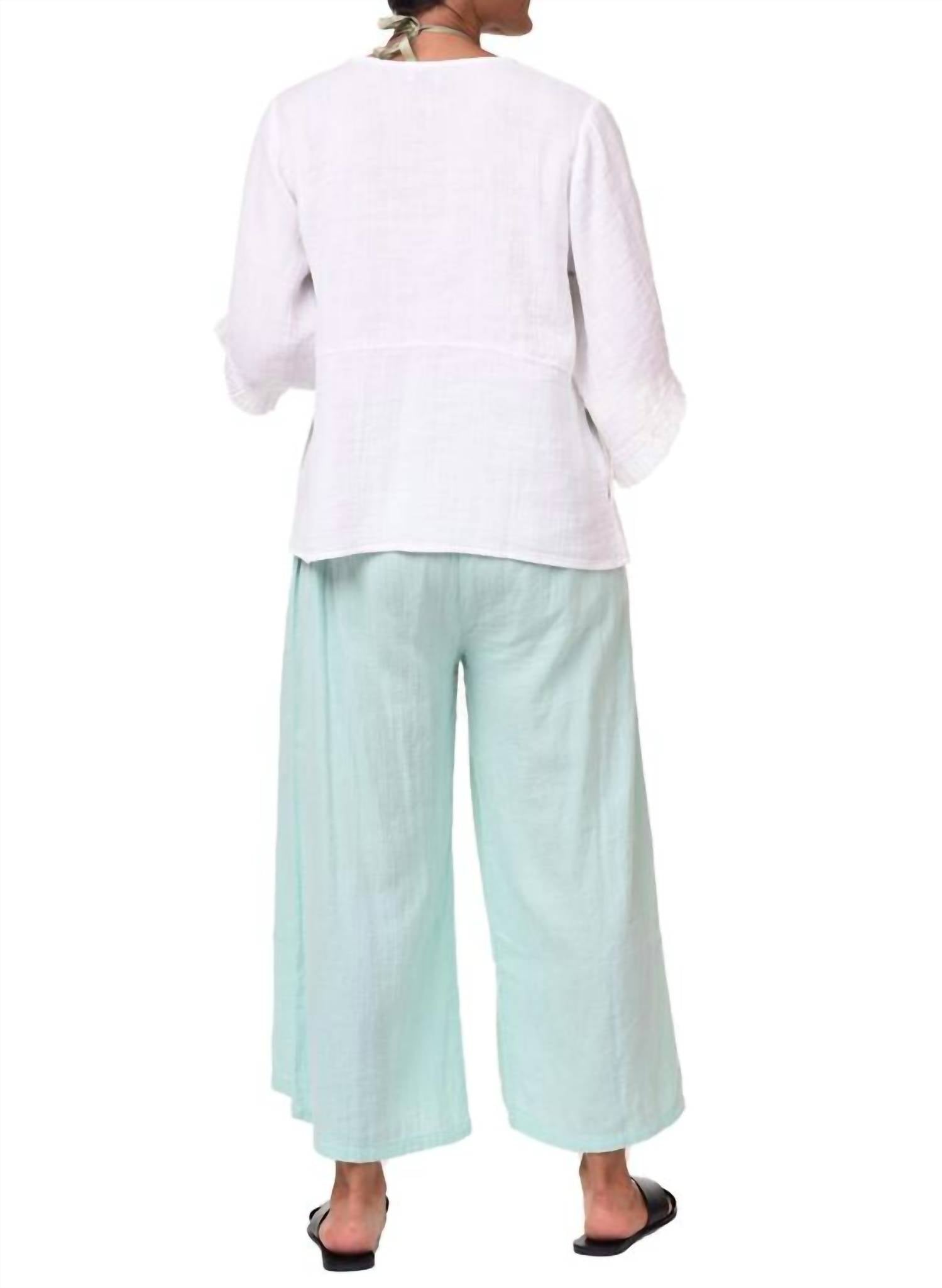 Откройте для себя брюки Palazzo от Tulip Clothing - шикарное дополнение к вашему гардеробу, созданное с учетом комфорта и стиля. Эти брюки с высокой талией, очень широкими штанинами и свободным кроем дополнены застежкой на резинке по всей длине для удобства и комфорта. Брюки изготовлены из 100% хлопковой марли, имеют размеры от 36,75 дюйма (XS) до 38 дюймов (XXL) с постоянной длиной внутреннего шва 24,5 дюйма (61 см) во всех размерах. Эти брюки цвета морской волны с удобными накладными карманами спереди - воплощение минималистичного стиля, идеально подходящего для празднования Нового года или любой другой праздничной вечеринки.