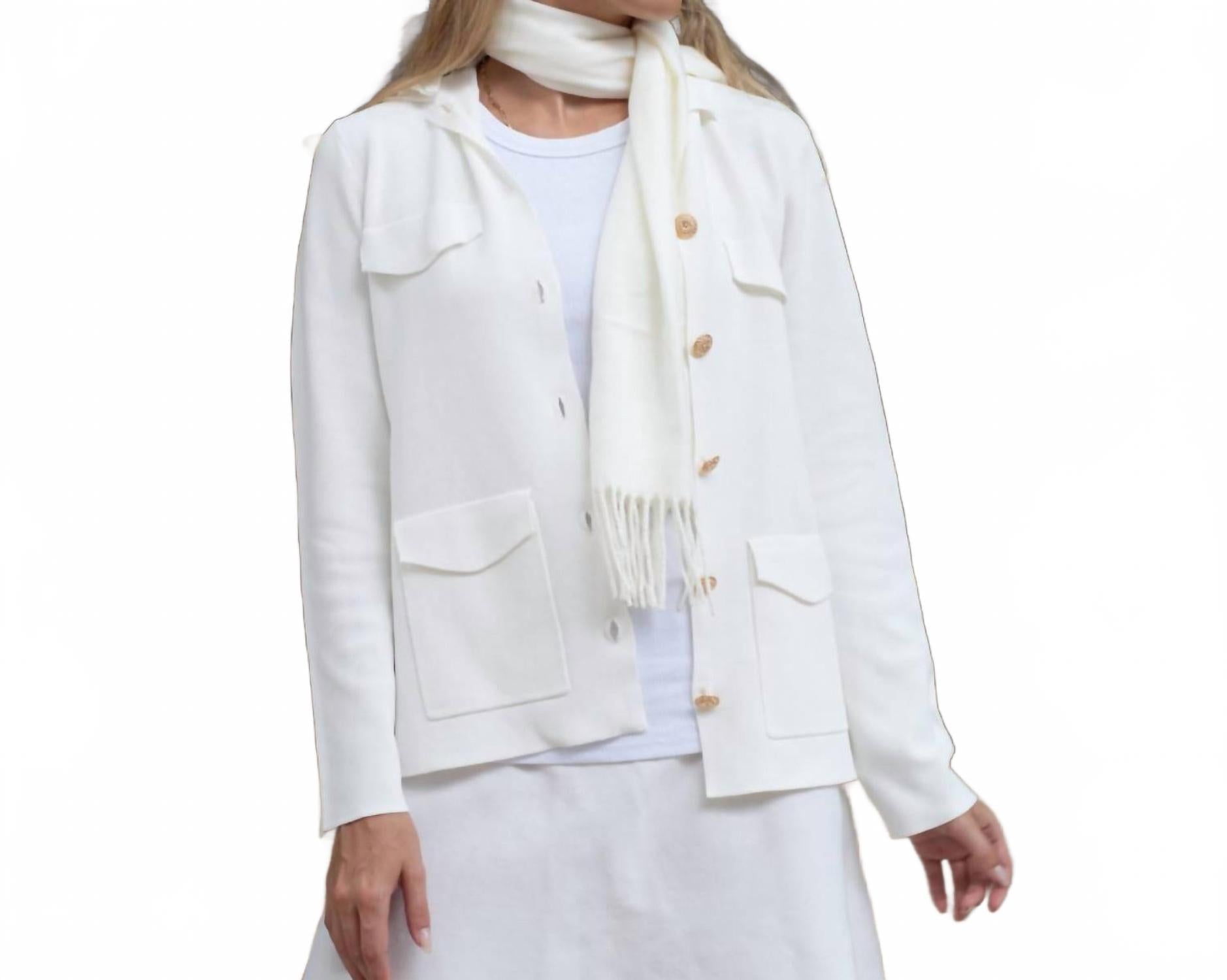 Самая стильная и универсальная куртка в стиле «худи». Сочетайте ее с любимыми джинсами или накиньте поверх любого повседневного платья. Представляем съемную толстовку с капюшоном Aaliyah от Esteem Couture, выполненную в шикарном зимне-белом цвете для современных минималистов. Эта куртка с длинными рукавами выполнена из изысканного трикотажа. Элегантная застежка на пуговицы делает ее универсальной, а съемный капюшон позволяет создавать разнообразные образы. Практичные карманы позволяют удобно хранить все необходимое, что делает ее идеальным вариантом для осени и таких мероприятий, как День благодарения или начало учебного года.