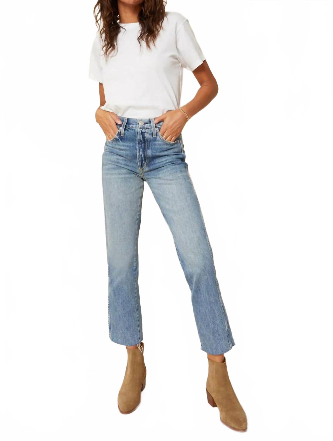 Эти классические джинсы прямого кроя идеально сидят и подходят практически ко всему. Представляем джинсы Loverboy Denim от AMO - идеальное сочетание винтажного шарма и современного стиля. Эти женские джинсы с высокой посадкой имеют прямой крой, укороченные края с бахромой и внутренний шов 66 см. Изготовленные из 100% хлопка в Лос-Анджелесе, они обеспечивают комфорт и прочность благодаря легкой потертости. Застежка на пуговицы и пять карманов завершают образ, идеально подходящий для тех, кто ценит моду 90-х. Уход: машинная стирка в холодной воде и сушка на подвешенном состоянии или в сушильной машине при низкой температуре.