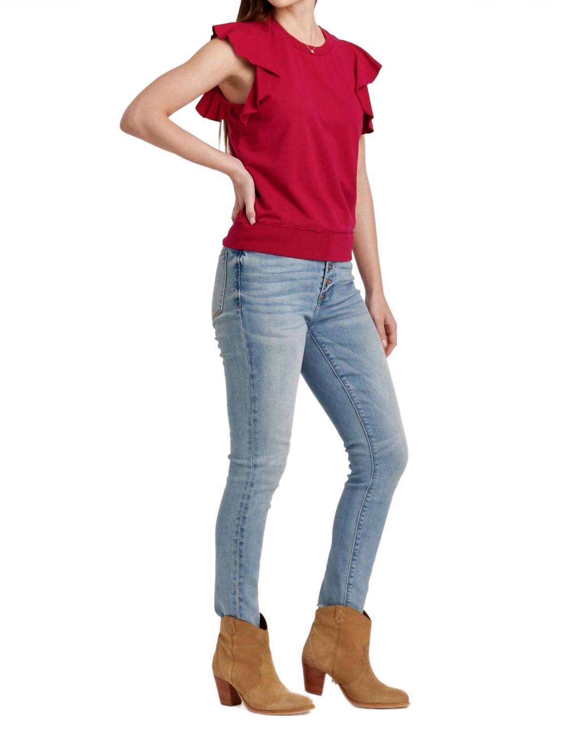 Прохладная погода требует многослойности, и нам нравится эта очаровательная толстовка по всем очевидным причинам. Откройте для себя непринужденный стиль с топом Layla от Another Love - рубиново-розовой базой без рукавов и с шикарным круглым вырезом. Изготовленный из смеси 95% хлопка и 5% спандекса, этот топ обеспечивает комфорт и модный вид. Важно отметить, что застежка-липучка и необработанные оборки придают ему модный вид. Прост в уходе: достаточно стирать в стиральной машине в холодной воде и сушить в стиральной машине при низкой температуре. Длина изделия - 22 дюйма (52 см), идеально подходит для самых разных случаев.