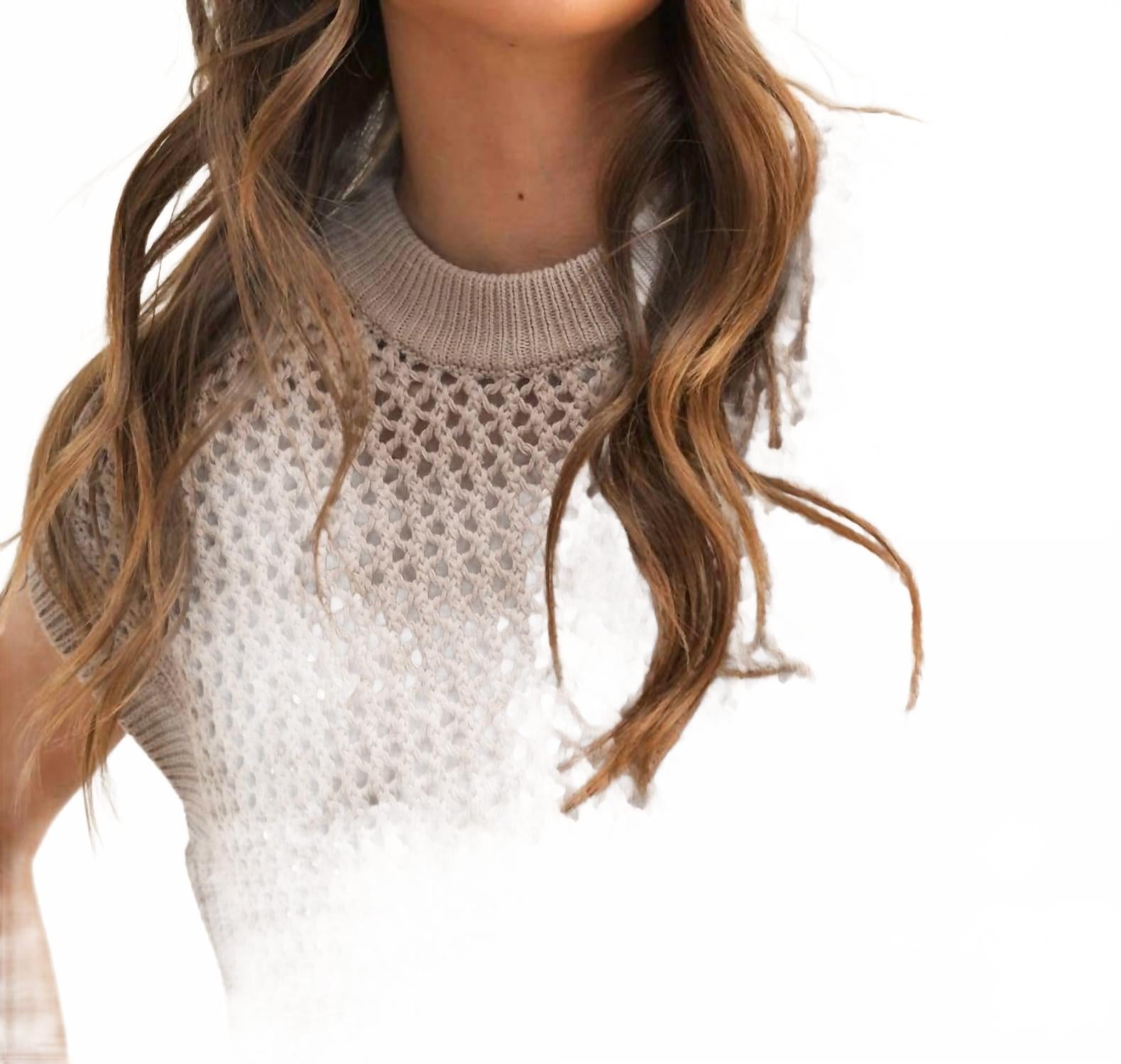 Женский вязаный крючком топ в цвете камень MIOU MUSE, Stone