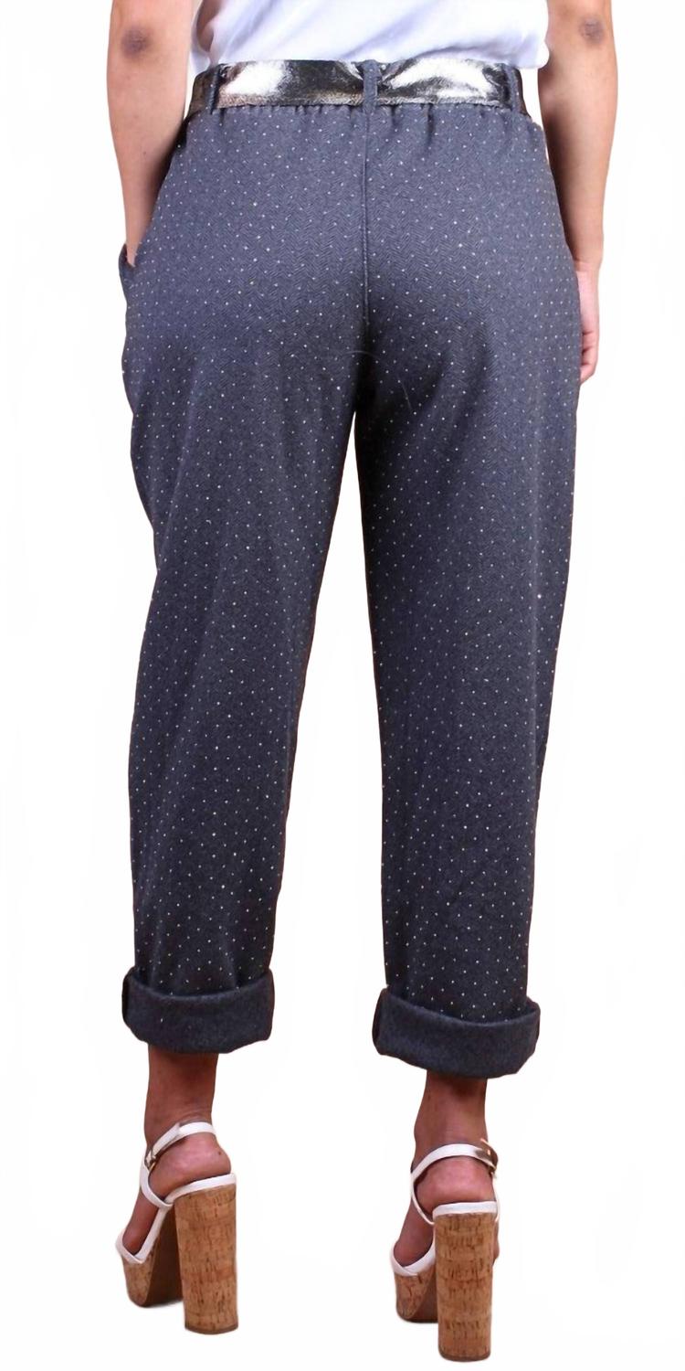Этим крутым девчонкам-джоггерам спортзал не нужен. Представляем брюки-джоггеры Gemma Jogger от GIGI MODA - стильное дополнение к вашему гардеробу в универсальном антрацитовом цвете. Эти женские спортивные брюки выполнены из удобного трикотажа (60% полиэстера и 40% хлопка) и дополнены стильным поясом с металлическим ремнем и эластичным поясом для индивидуальной посадки. Сделанные в Италии, они украшены нежным шевронным принтом, украшенным миниатюрными стразами, и дополнены двумя передними карманами и манжетами снизу. Застежка легко надевается, а удобный размер не имеет значения, идеально подходит для повседневных случаев.