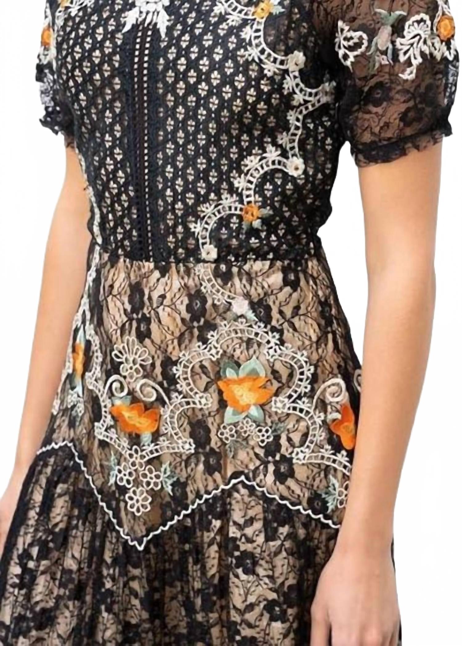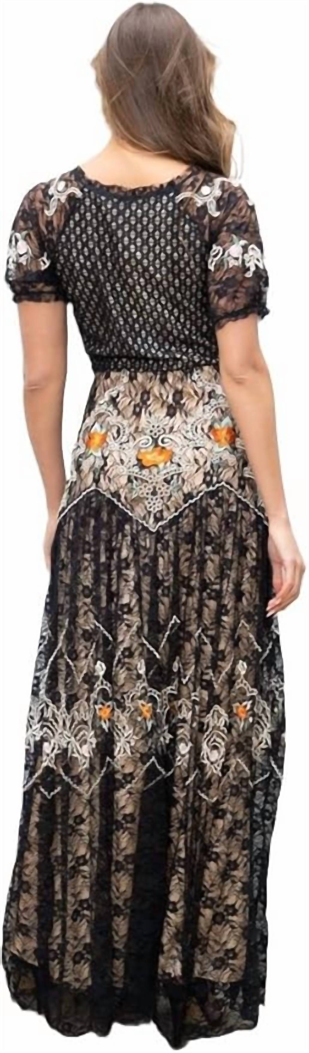 Побалуйте себя элегантностью в длинном платье с кружевной вышивкой от BAROK PARIS - великолепном выборе для вечернего мероприятия. Это черное платье макси с короткими рукавами и глубоким круглым вырезом украшено изысканным кружевом, вышивкой и бисером. Платье выполнено из 100% полиэстера и имеет А-образный силуэт. Длина платья составляет 60 дюймов (156 см), что придает ему изысканный вид. Застежка - боковая молния. Платье изготовлено из импортных материалов, поэтому для сохранения его изысканного дизайна необходима химчистка.