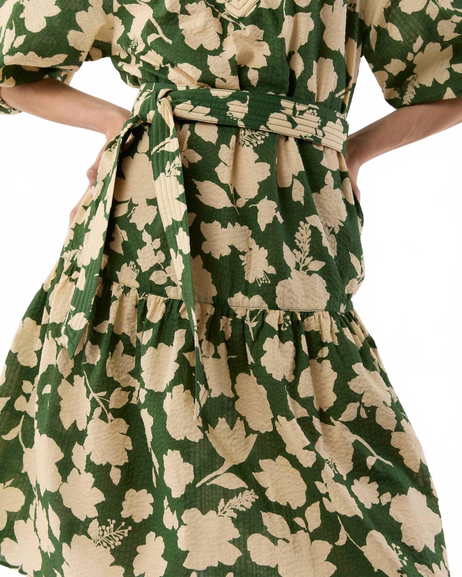 Аллегра Миди Платье в зеленом/натуральном цветочном шифоне Ann Mashburn