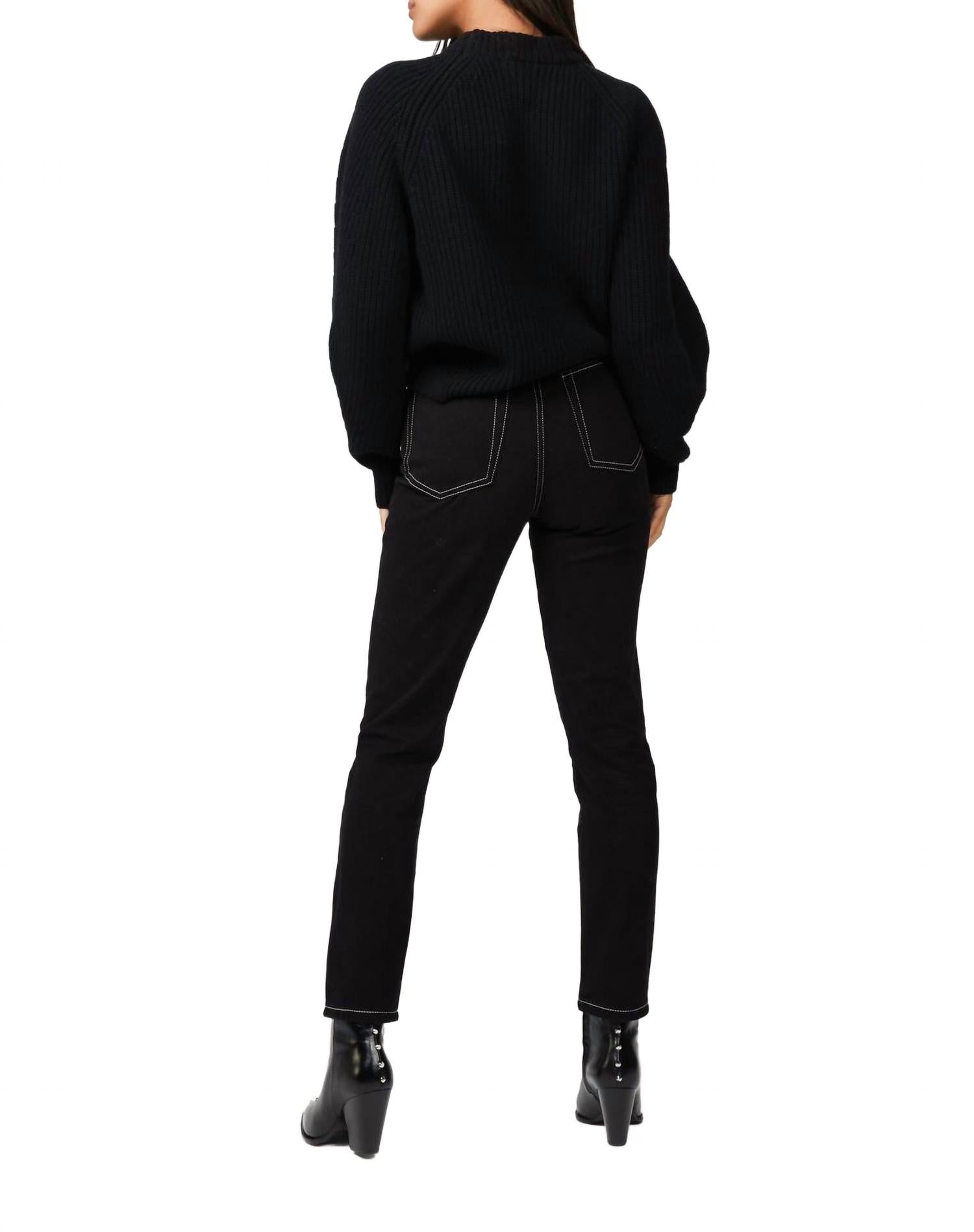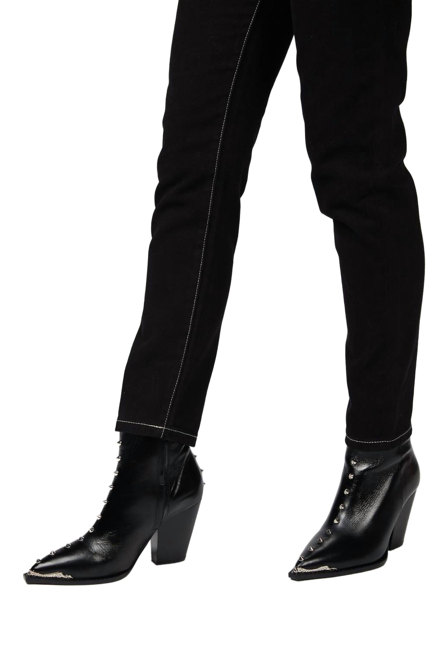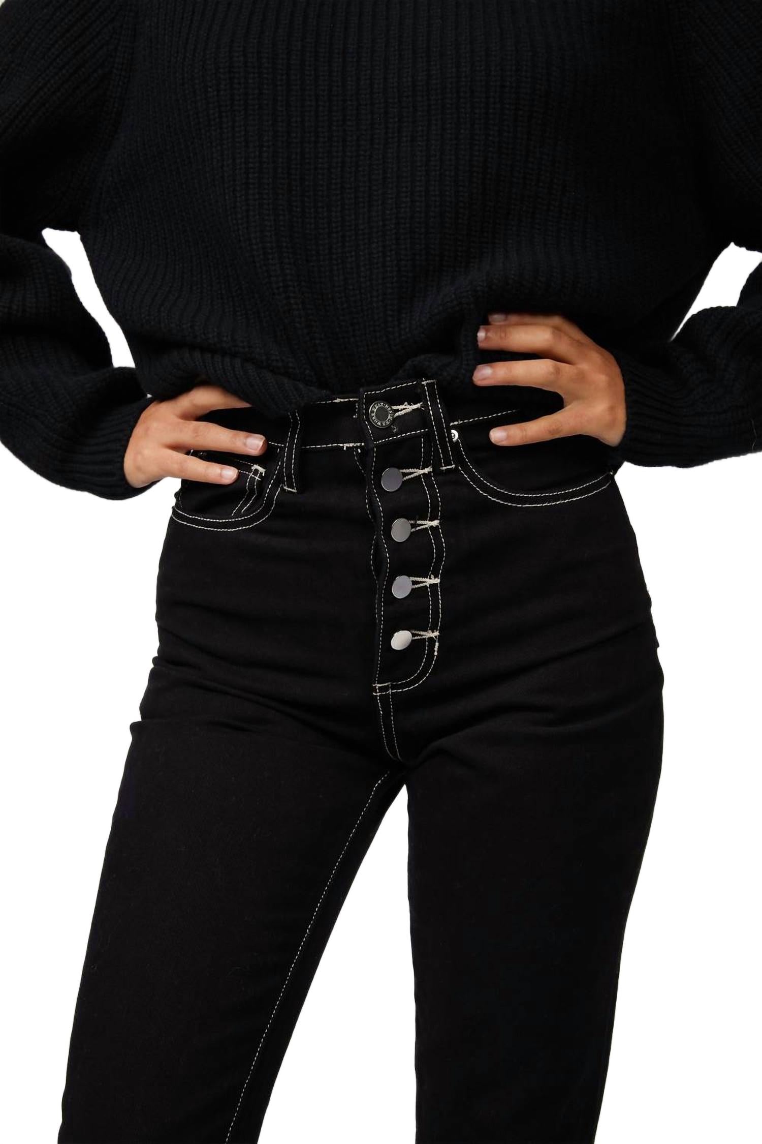 Высокая талия и прямой крой брючины выполнены из плотного хлопкового денима, обеспечивающего максимальный комфорт. Они украшены фирменными деталями: пятью карманами, застежкой на пуговицы и отделкой из матового никеля в стиле ретро.