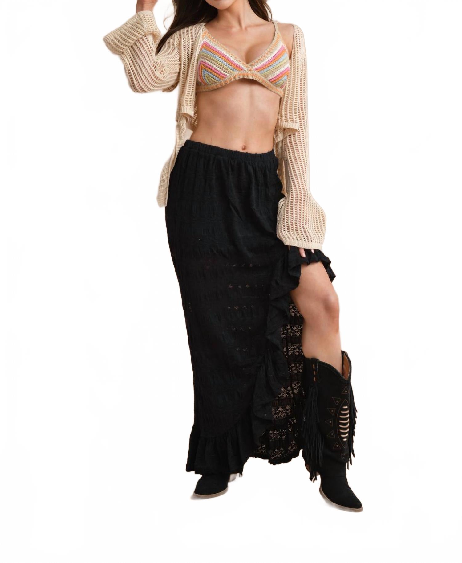 Черная юбка с разрезом и рюшами Bailey Rose