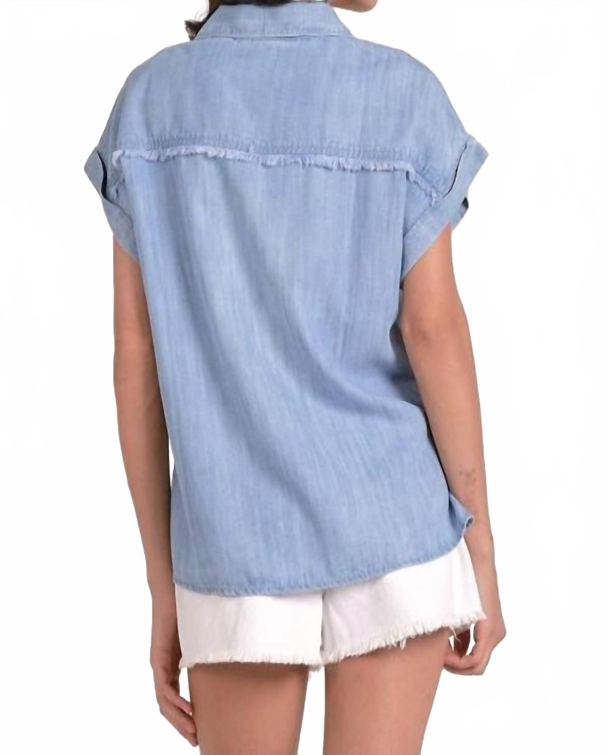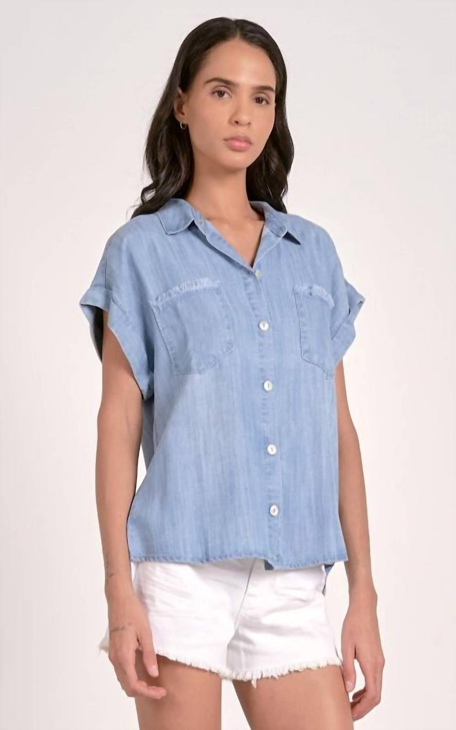 Футболка с коротким рукавом, которая вам понравится, в любом цвете. Представляем топ Button Me Up от ELAN - модную вещь, которая украсит ваш повседневный летний образ. Этот джинсовый топ с коротким рукавом прохладного синего цвета отличается однотонным узором, бахромой на карманах и строгим воротником, создавая стильный, но в то же время непринужденный образ. Изготовленный из 100% лиоцелла, он обеспечивает комфорт и удобство, дополняемые классической застежкой на пуговицы. Рекомендации по уходу: ручная стирка и сушка в разложенном виде на горизонтальной поверхности, что гарантирует долговечность и непринужденный вид.