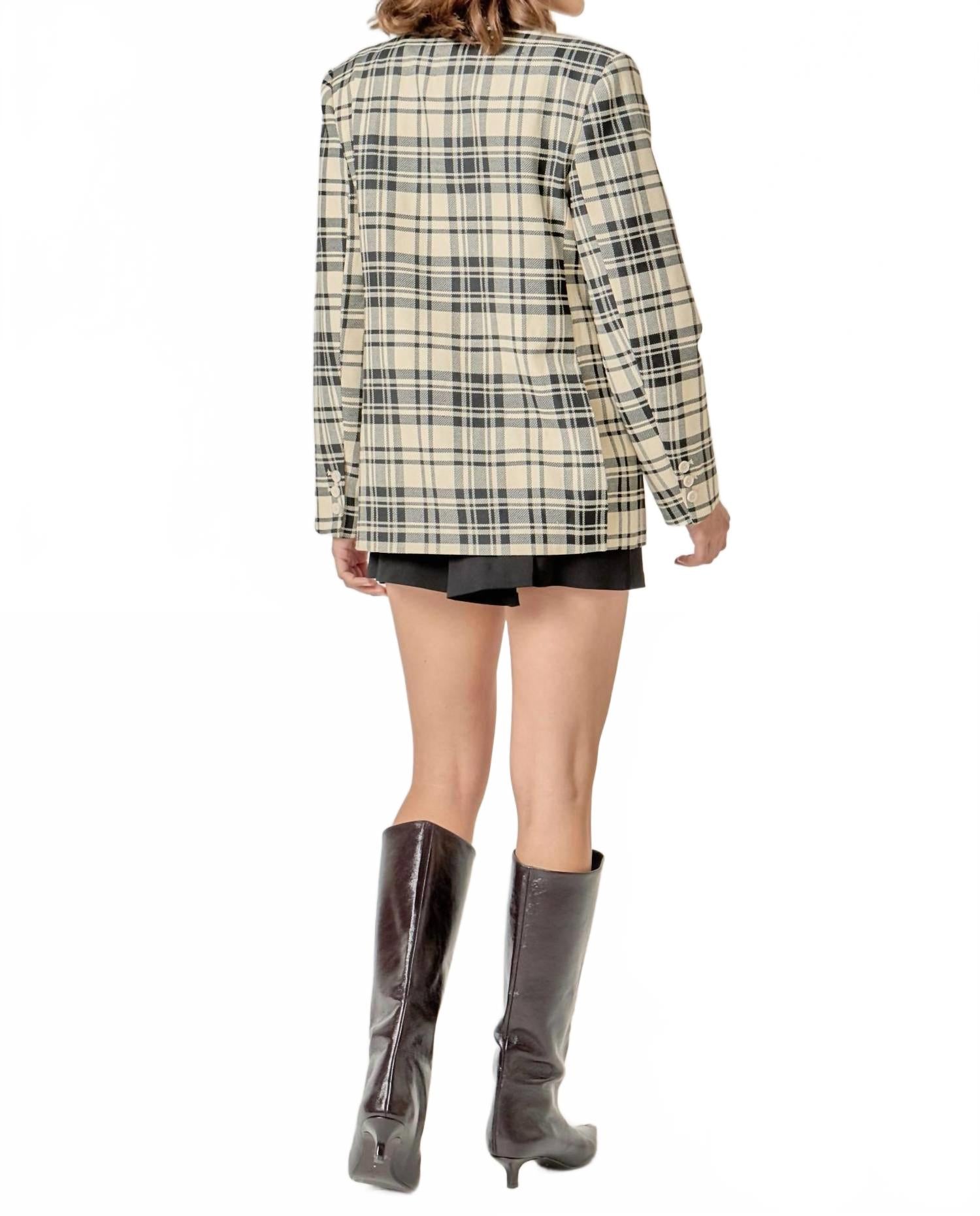 Кремовый клетчатый пиджак Карри English Factory