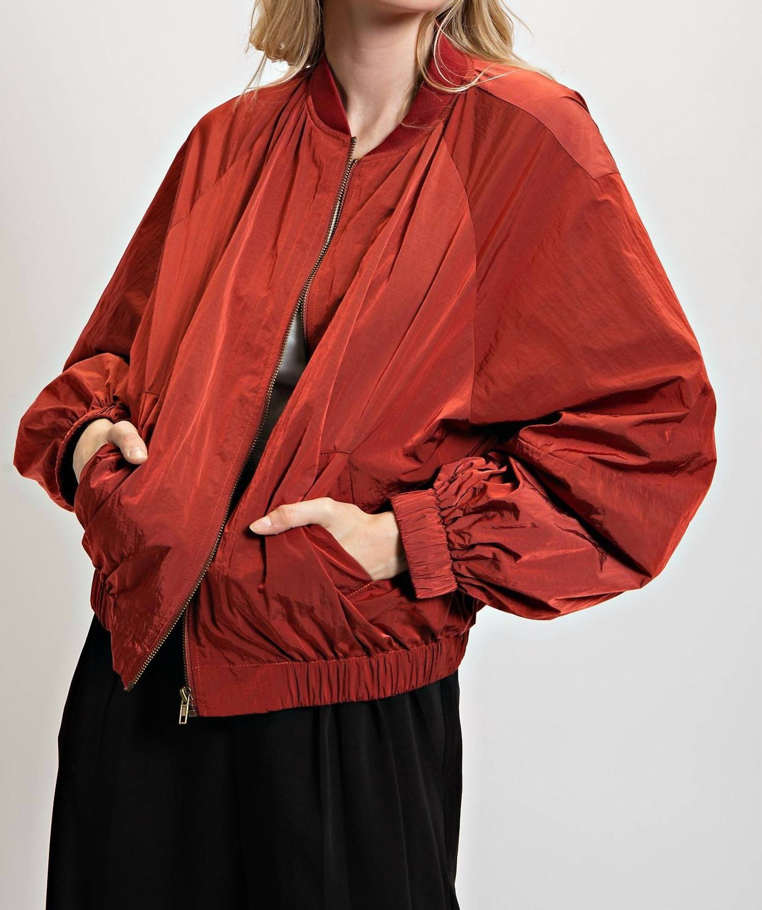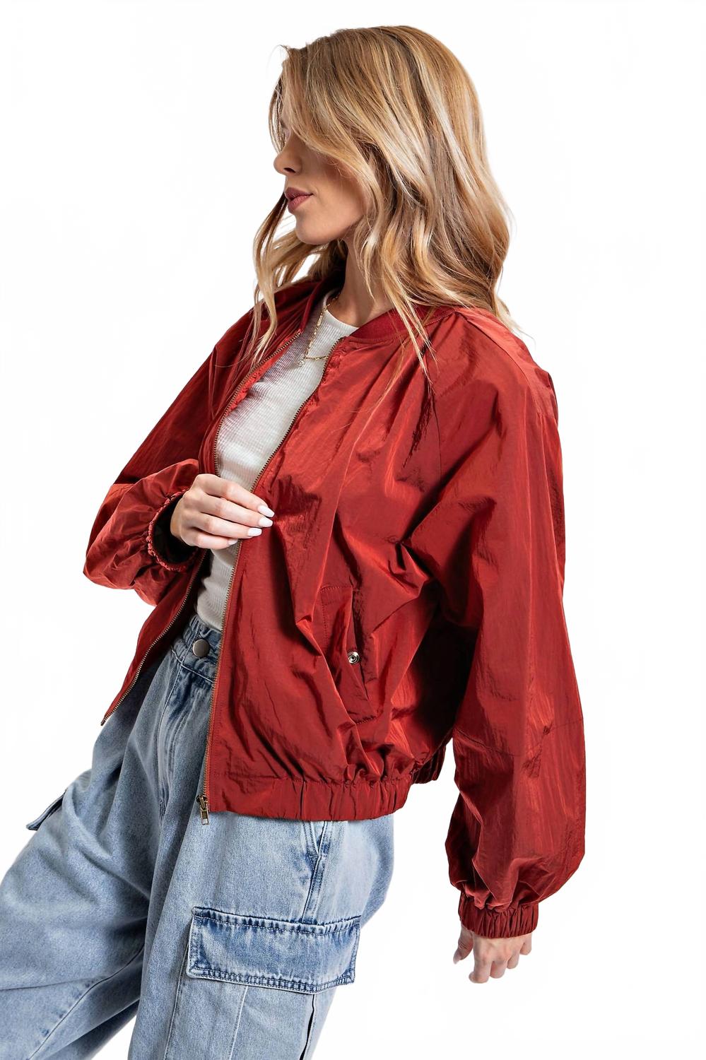 Новая версия вашей любимой классической куртки-бомбера. Создайте непринужденный стиль с курткой-бомбером Parachute от Easel - незаменимой вещью для путешествий и не только. Эта куртка с длинными рукавами цвета «London Brick», изготовленная из 100% тканого нейлона, имеет удобную застежку-молнию и боковые карманы, что обеспечивает стиль и функциональность. Свободный свободный силуэт с эластичными краями обеспечивает комфорт при любой носке. Размеры: длина - 22,75 дюйма, обхват груди - 25 дюймов. Уход за этой однотонной курткой-бомбером так же прост, как и машинная стирка, идеально подходит для весны и Дня благодарения.