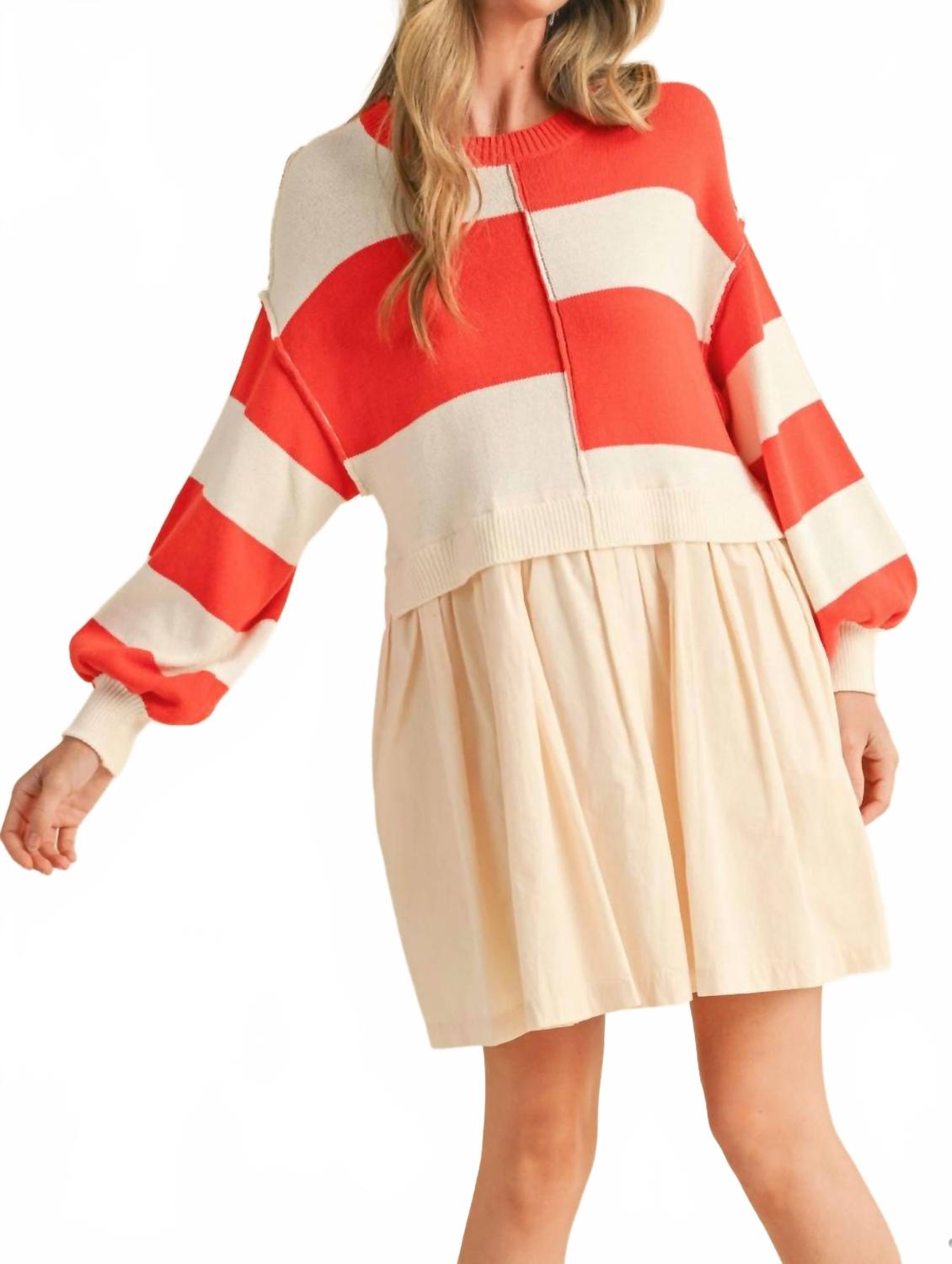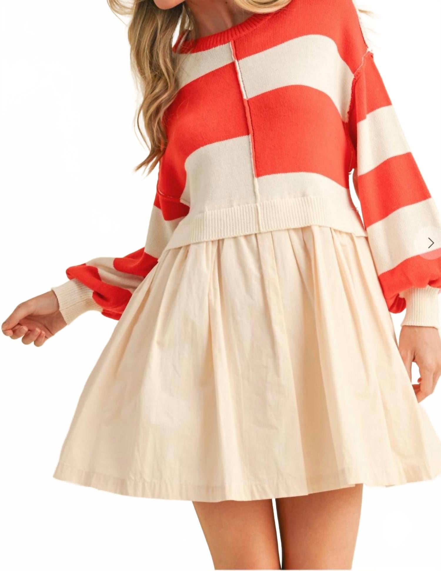 Свитер-платье в технике микс в оранжевом цвете &merci