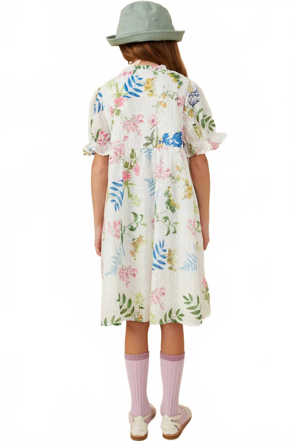 Детское мини-платье Halle от Hayden LA сочетает в себе непринужденный стиль и роскошь для вашей маленькой модницы. Это платье А-силуэта длиной до колена, выполненное из 100% мягкого хлопка с ярким цветочным узором, имеет короткие рукава и круглый вырез горловины, что добавляет ему изысканности. Застежка-липучка обеспечивает легкость надевания, а подкладка и карманы обеспечивают комфорт и практичность. Идеально подходит для лета и праздников. Уход включает ручную стирку и сушку на веревке, чтобы сохранить его стиль бохо-шик.