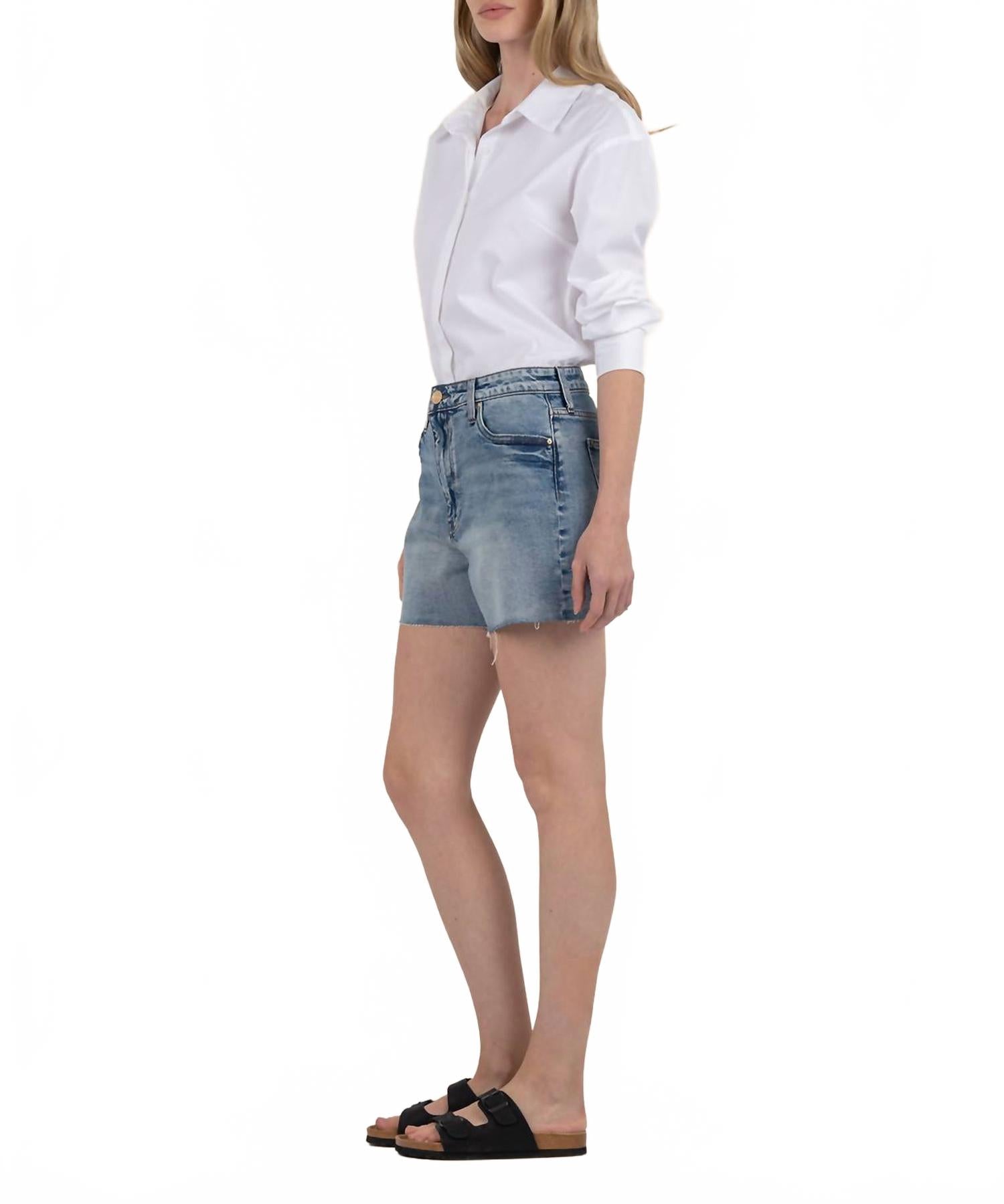 Джинсовые шорты настолько универсальны, что их можно носить буквально с чем угодно. Представляем джинсовые шорты Taylor High Rise Denim Short от KUT FROM THE KLOTH - стильное дополнение к вашему летнему гардеробу. Эти шорты сшиты из комфортной хлопковой смеси (99% хлопок, 1% спандекс) со стильной высокой талией и необработанным краем. Застежка на пуговицы, универсальный дизайн, длина внутреннего шва 3,75 дюйма, ширина брючин 26 дюймов, посадка 12 дюймов. Оцените свободу средней базовой стирки, идеально подходящей для пляжа или повседневной прогулки, а также простоту ухода благодаря машинной стирке и машинной сушке.