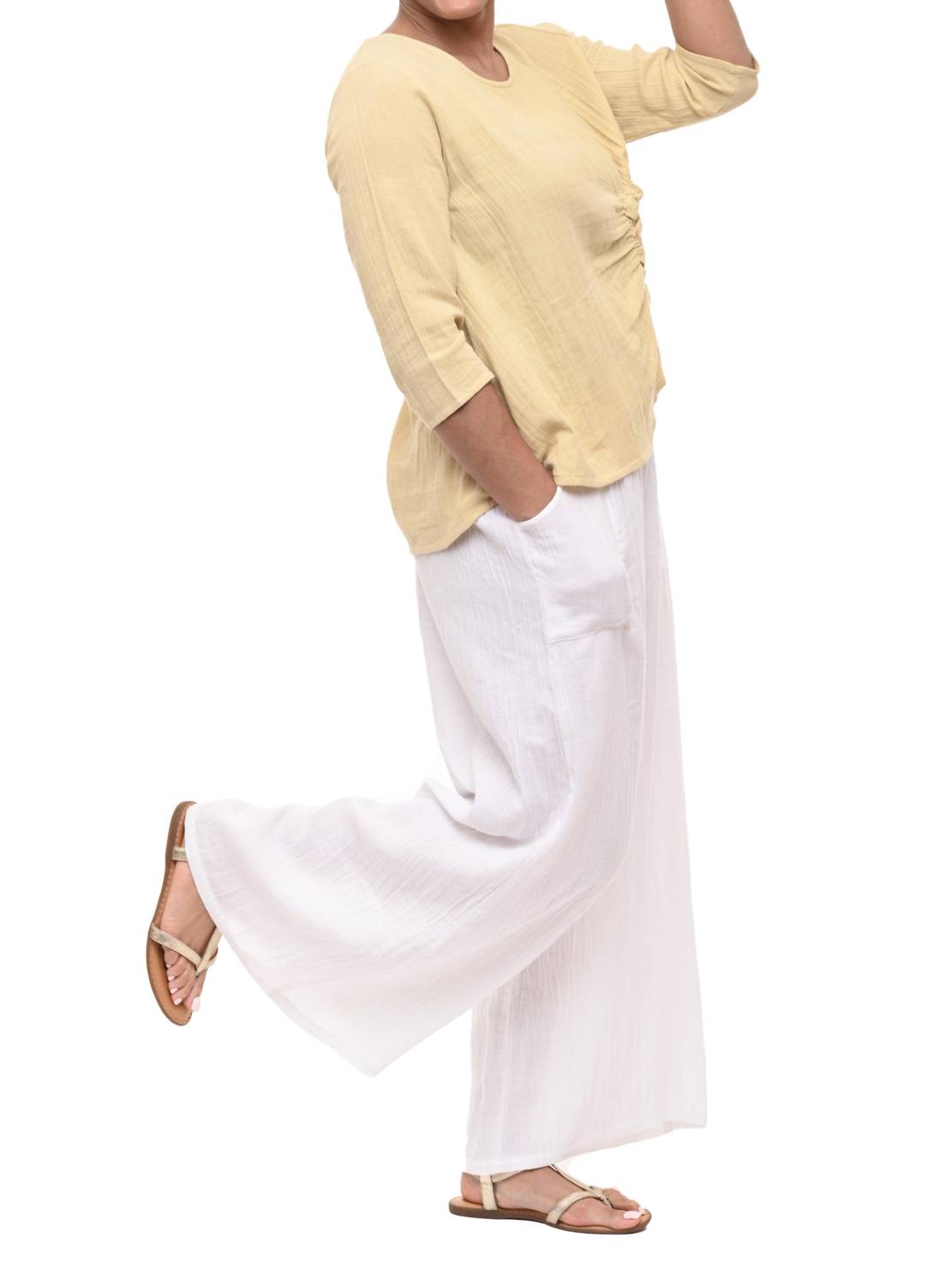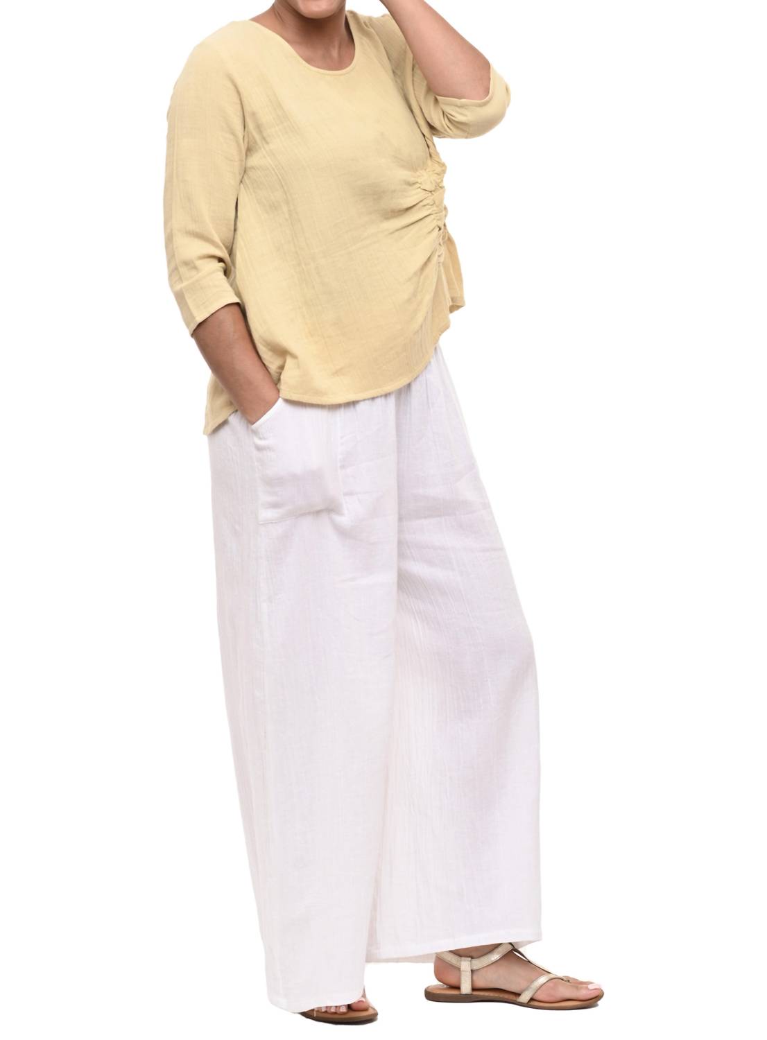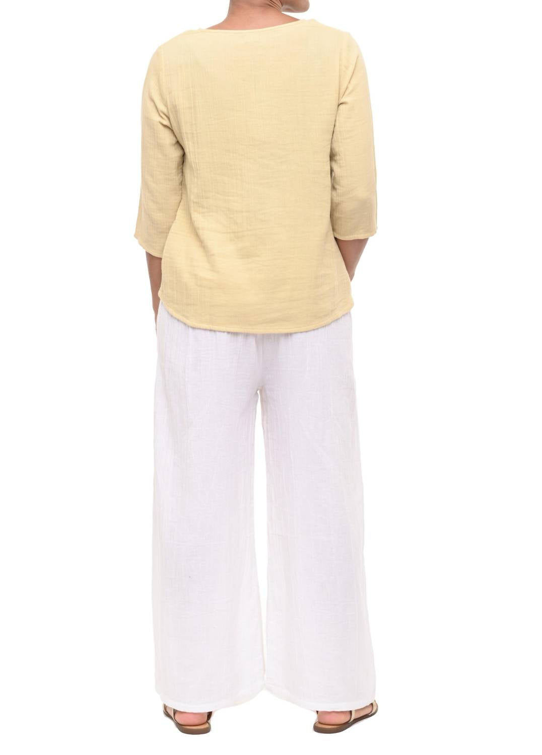 Представляем топ Olga Top от Tulip Clothing - элегантную тунику, созданную для изысканного весеннего образа. Эта модель из 100% хлопковой марли имеет рукава три четверти и уникальную сборку спереди. Топ удобно застегивается на застежку и имеет округлый вырез горловины. Доступны размеры от XS до XL с точными замерами. Для удобства ухода рекомендуется машинная стирка и сушка в стиральной машине. На модели размер S.