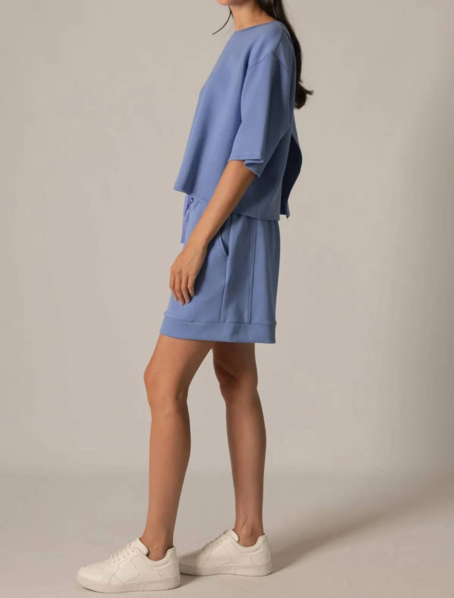 Классическая синяя футболка с современным дизайном. Рукава три четверти и уникальный перекрещивающийся крой сзади. Свободный, свободный крой. Дышащая, мягкая и при этом структурированная. Изготовлена из смеси 48% модала, 48% полиэстера и 4% спандекса. Идеальное сочетание комфорта и стиля благодаря круглому вырезу. Застежка - простое натягивание. Уход: можно стирать вручную или в стиральной машине на деликатном режиме в холодной или теплой воде, затем сушить в подвешенном состоянии. Размер соответствует заявленному, возможно, немного большемерит.
