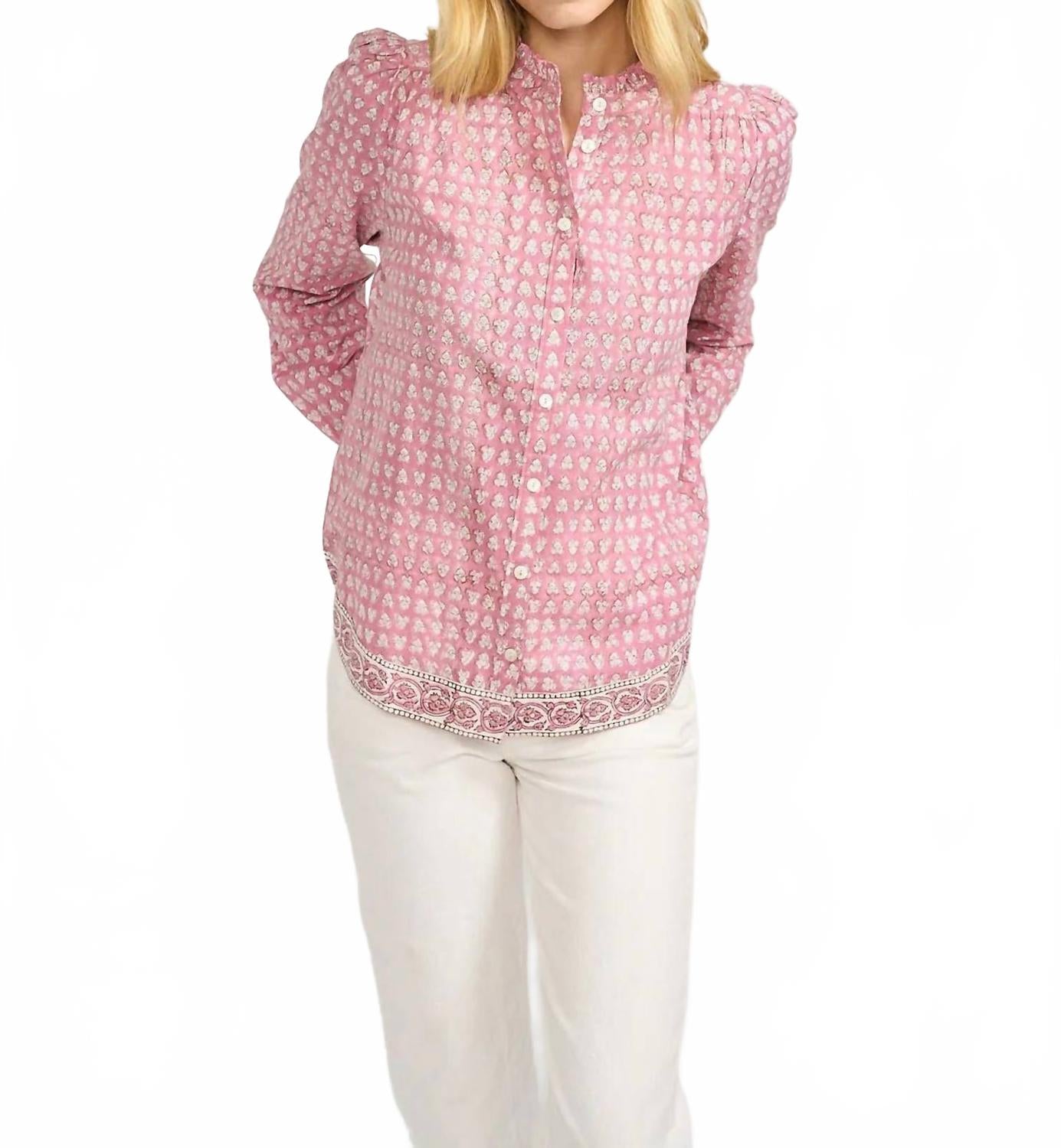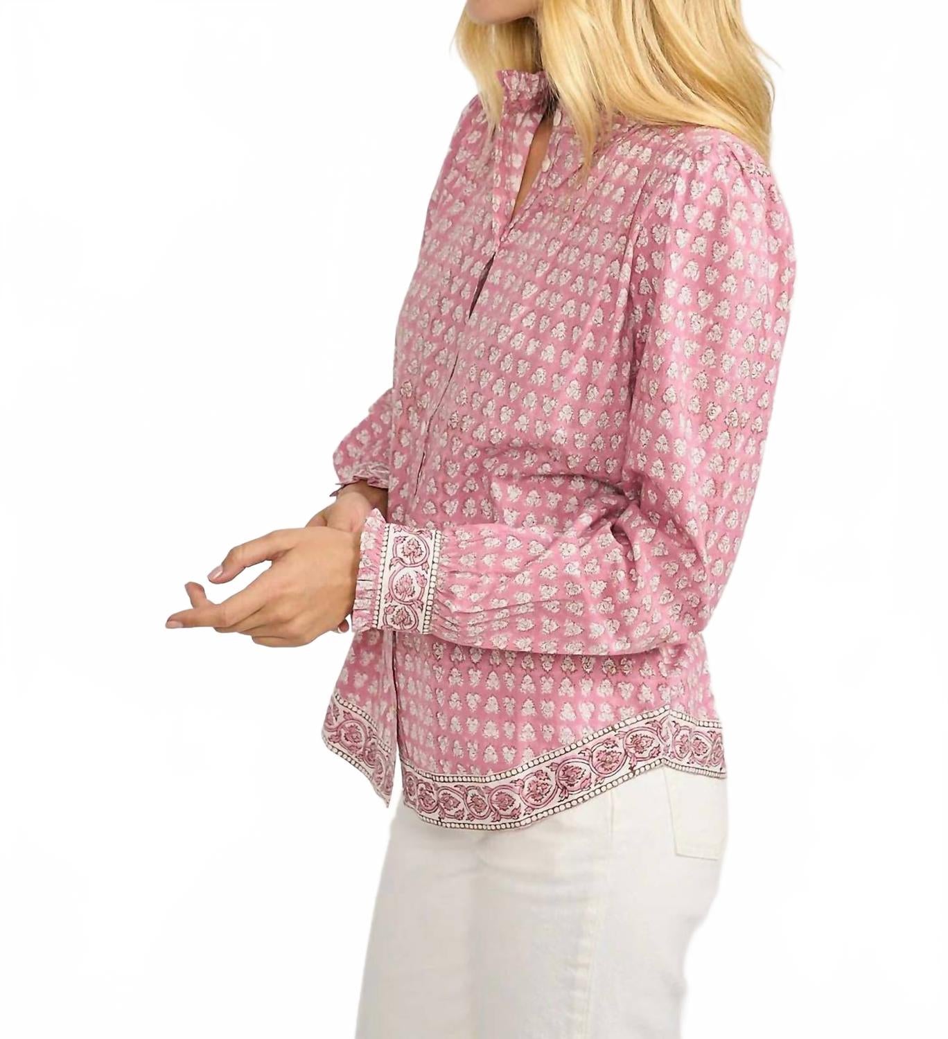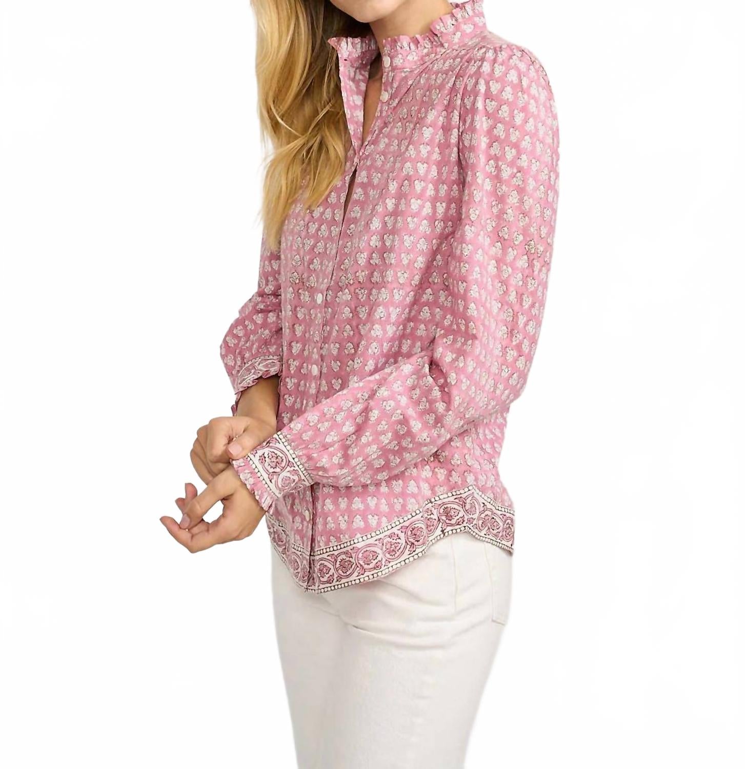 Идеально сшитая и мягкая на ощупь. Представляем рубашку Marea Charlie с длинными рукавами цвета «лаванда-чертополох» - шикарный и вневременной предмет гардероба на любой случай. Эта рубашка из 100% хлопка с длинными рукавами и изящной мини-оборкой на воротнике и манжетах излучает непринужденное очарование. Застежка на пуговицы по всей длине делает ее универсальной, идеально подходящей для ношения как в составе многослойной одежды, так и отдельно. Уход: ручная стирка в прохладной воде, сушить в разложенном виде на горизонтальной поверхности, гладить при низкой температуре с изнанки, чтобы сохранить яркость узоров.