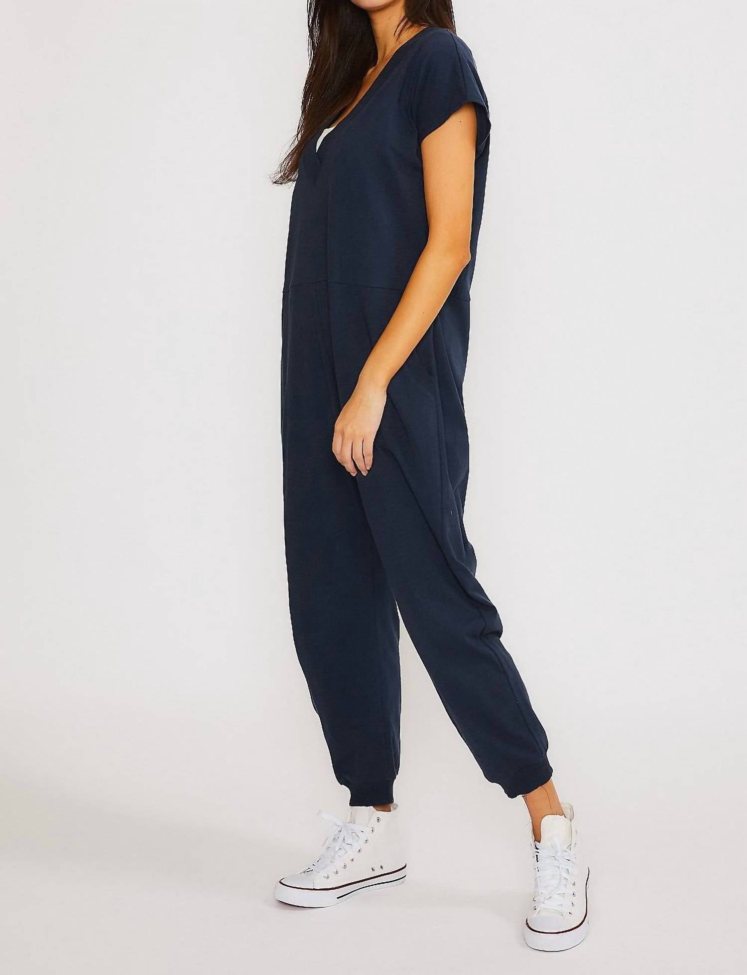 Идеальный выбор, когда нужно быстро надеть что-то, но при этом выглядеть стильно и непринужденно. Представляем комбинезон Hannah от Wasabi + Mint - стильный вариант для теплой погоды в изысканном темно-синем цвете. Благодаря коротким рукавам и плотной ткани из 100% хлопка этот комбинезон обеспечивает легкость и комфорт. Он имеет привлекательный V-образный вырез и функциональные боковые карманы, а изящный струящийся силуэт бэби-долл длиной до щиколотки легко надевать и снимать. Уход за этим универсальным изделием: ручная стирка в холодной воде и сушка на вешалке, что делает его незаменимой вещью в любом гардеробе.