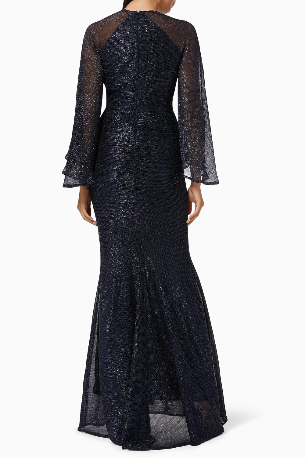 Ищете идеальное платье для мероприятия? Больше не ищите... Представляем длинное платье Conley 2 Midnight Pleats от Talbot Runhof - изысканный выбор для ваших вечерних мероприятий в ярком цвете Nautical Blue. Это элегантное платье с длинными, слегка прозрачными рукавами реглан и изысканным V-образным вырезом, дополненным драпировкой спереди, и слегка приталенным силуэтом «русалка». Платье, изготовленное в Германии, на 55% состоит из полиэстера и на 45% из металла, что обеспечивает текстурированную отделку с металлизированными складками. Застежка на надежную молнию. Для оптимального ухода рекомендуется химчистка.