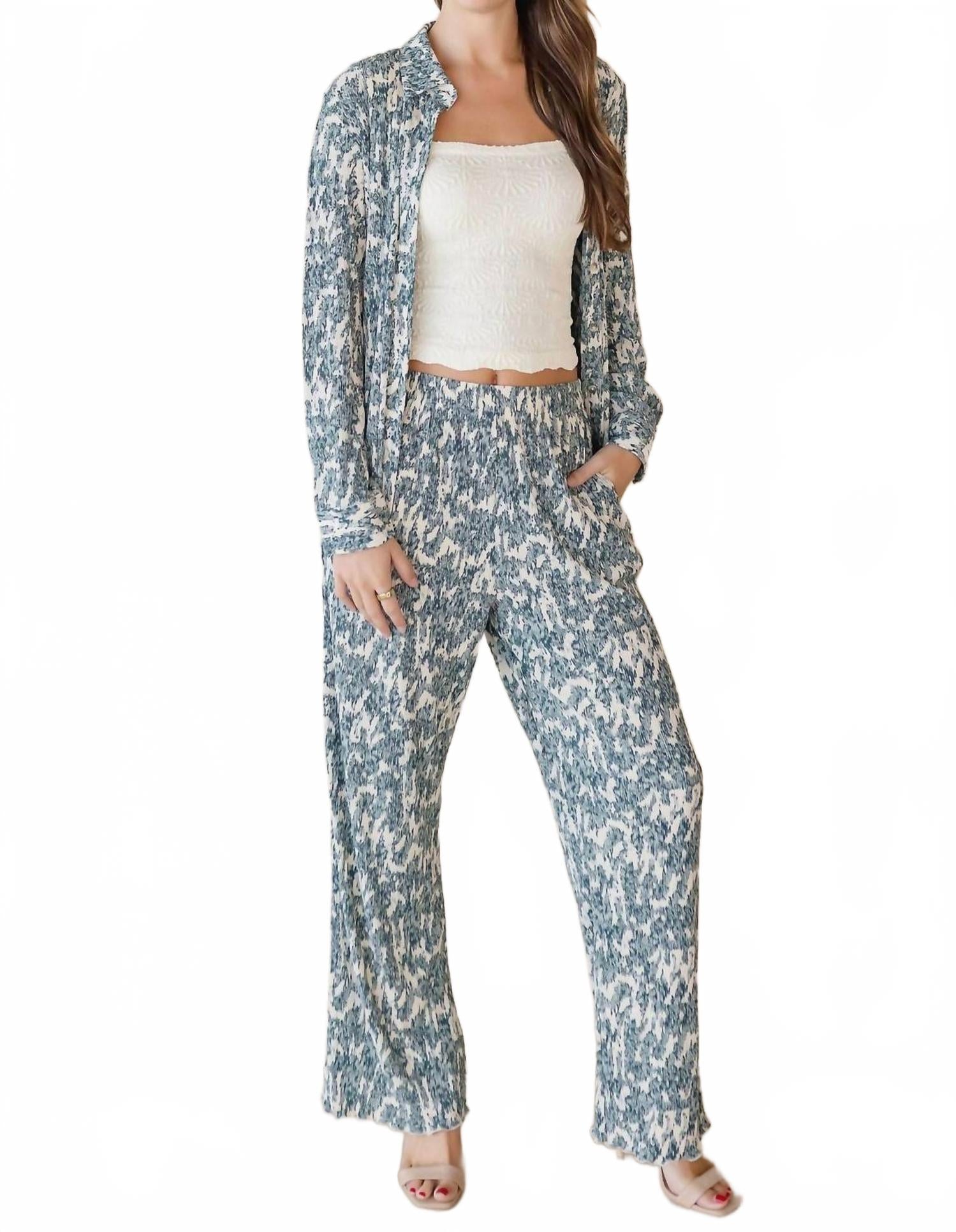Классическая рубашка на пуговицах, которая никогда не выйдет из моды. Встречайте рубашку Sheila Button Down от Gentle Fawn - шикарное дополнение к любому гардеробу благодаря своему фирменному кремово-сосновому узору. Эта рубашка с длинными рукавами, изготовленная из 100% полиэстера, выполнена из мягкого крепа с жатым эффектом и идеально подходит как для повседневной носки, так и для особых случаев. Застежка на элегантные пуговицы-ракушки сочетает в себе стиль и удобство. Рубашка проста в уходе: ее можно стирать в стиральной машине в деликатном режиме, а сушить следует на вешалке. Рост модели - 178 см, размер S.