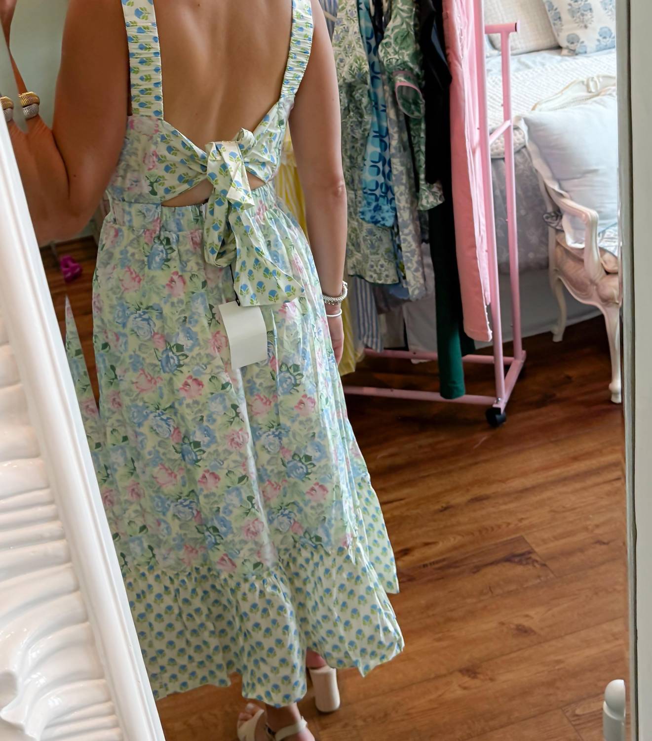 Платье идеальной длины существует. Дополните свой летний гардероб платьем Sunroom Bow Back Midi от &merci - платьем без рукавов в стиле бохо-шик. Это платье миди длиной миди украшено восхитительным смешанным цветочным узором, имеет квадратный вырез и облегающий лиф, подчеркивающий все изгибы фигуры. Платье создано для максимального комфорта: широкие бретели на эластичной подкладке, застежка-липучка, удобные карманы и эластичный пояс. Уход: машинная стирка. Идеально подходит для пляжного отдыха, сочетая практичность с элегантным вырезом на спине и длинным оборкой по низу для дополнительной свободы движений.
