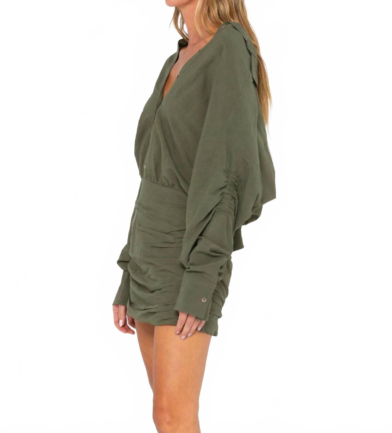 Это милое и удобное платье с длинными рукавами - воплощение всех его прелестей. Платье Vivie от JBQ в шикарном оливковом оттенке - изысканный выбор для любого случая. Платье-рубашка, выполненное из смеси 65% вискозы и 35% льна, имеет длинные рукава реглан со сборками, лиф-блузон и юбку-карандаш со сборками выше колена. Платье с отложным воротником и частичной застежкой на пуговицы создает элегантный образ, а кокетливая спинка добавляет ему привлекательности. Этот слиповер изготовлен в США из импортных материалов и прост в уходе: машинная стирка в холодной воде на щадящем режиме. Рост модели - 175 см, размер S.