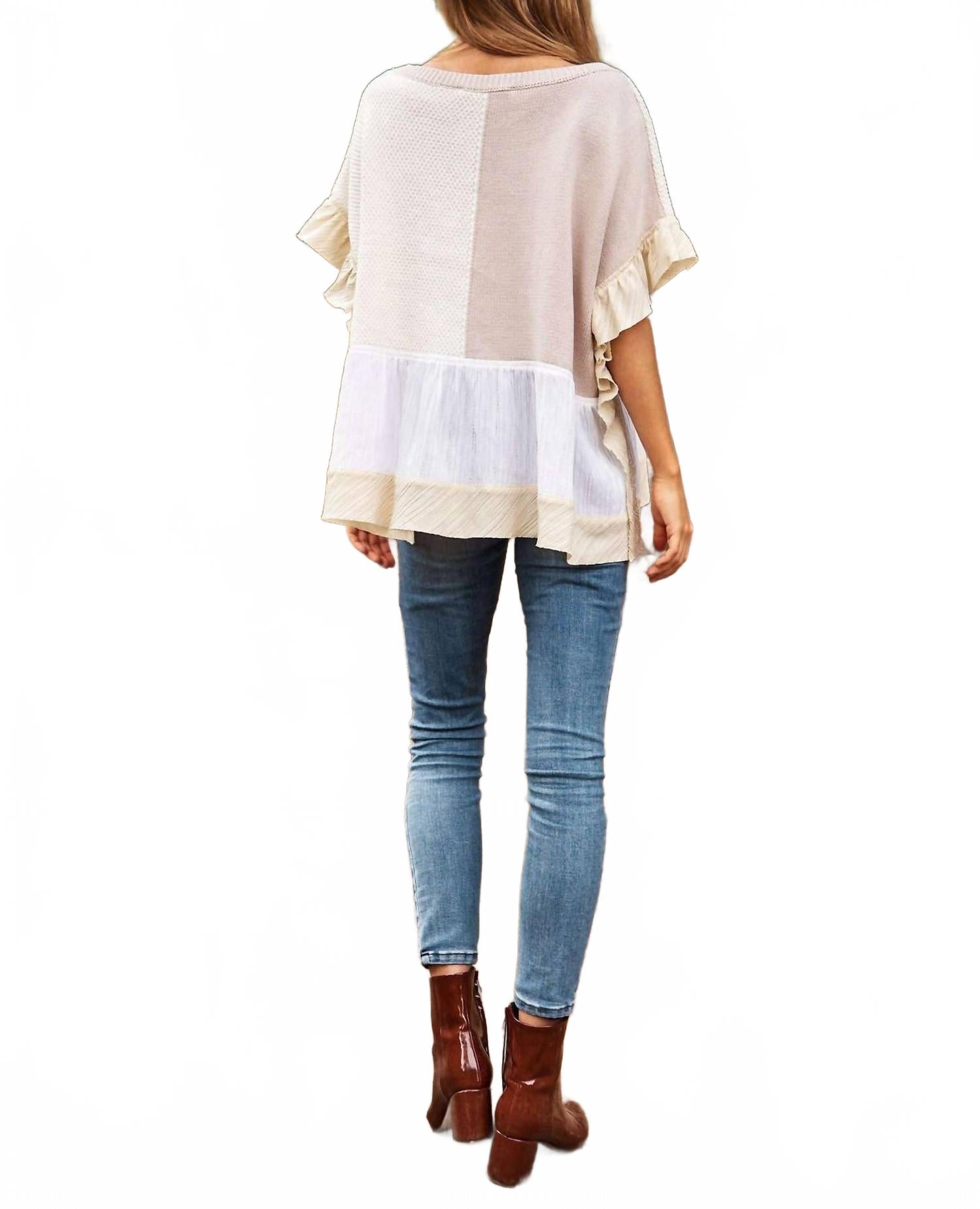 Mix Match Textured Ruffle Detail Sweater Top In White DAVI & DANI