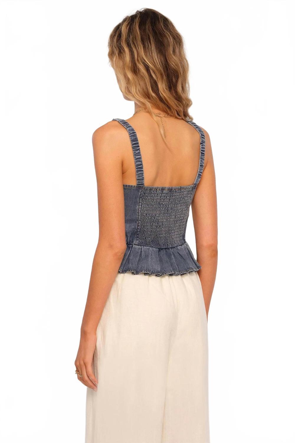 Пеплум топ в потертом дениме Heartloom, Washed Denim