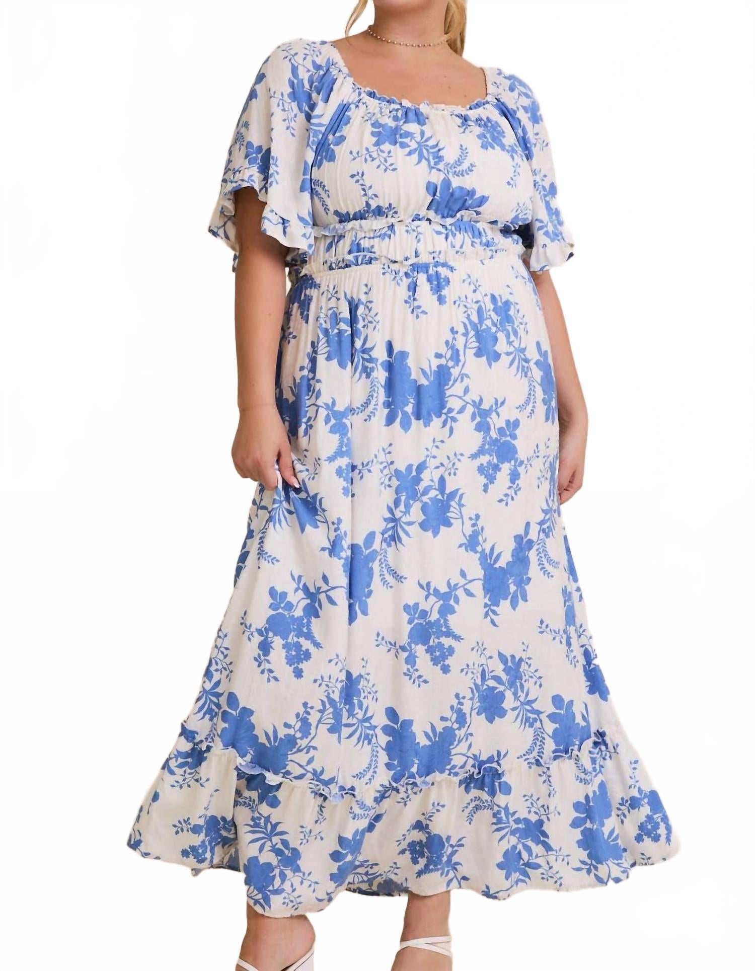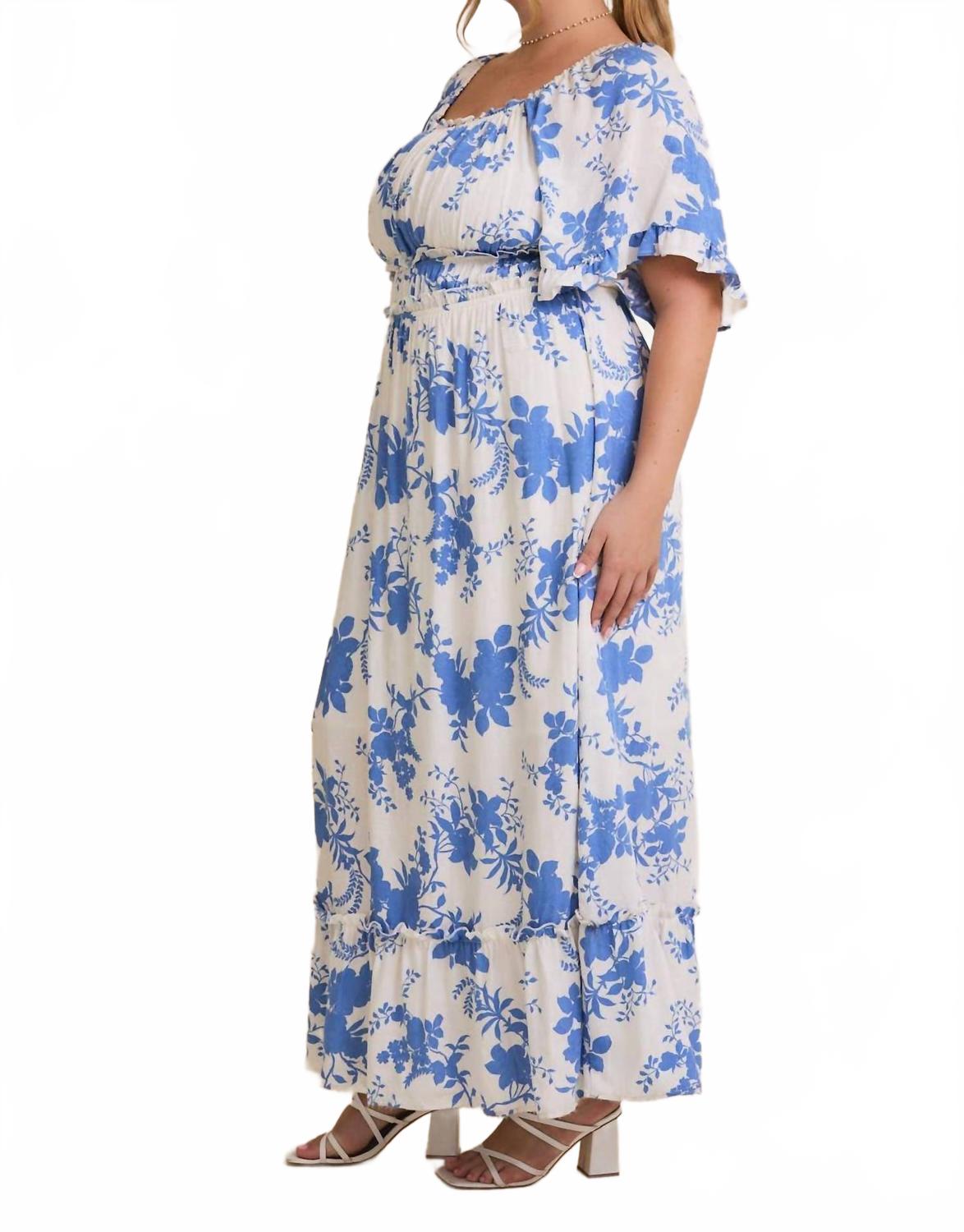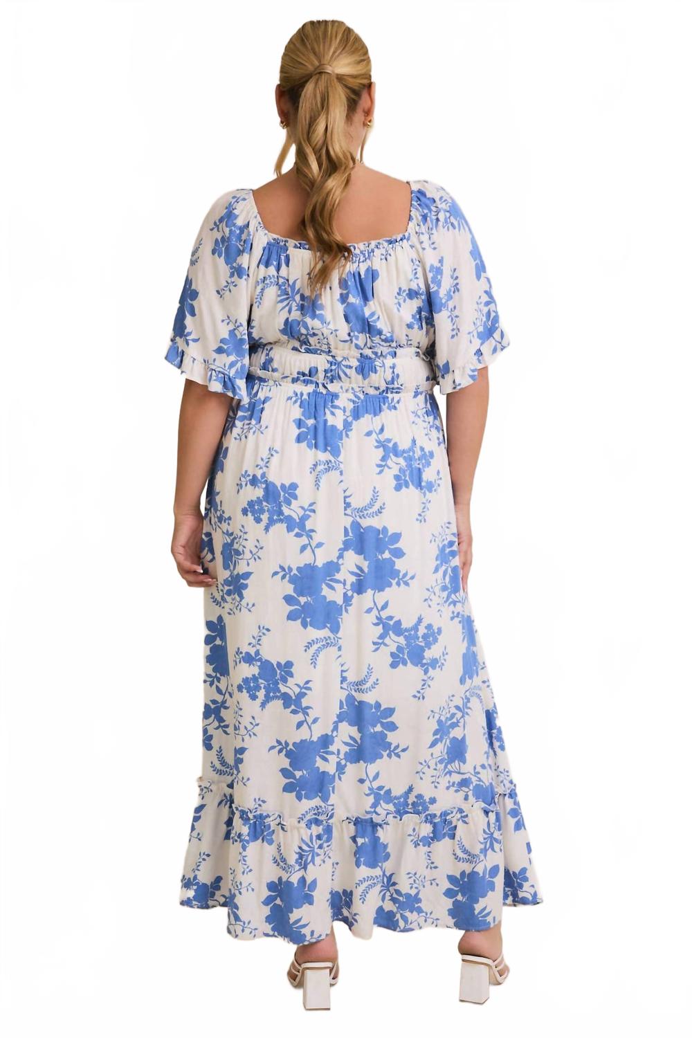 Индиго Блум Макси платье в бело-голубом цветочном принте GILLI