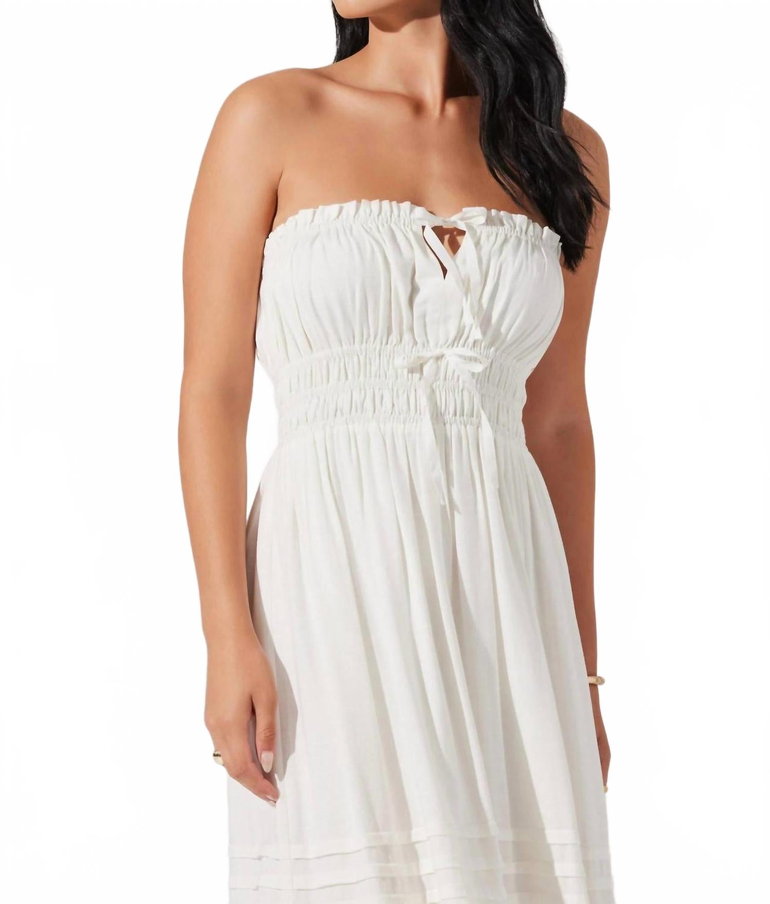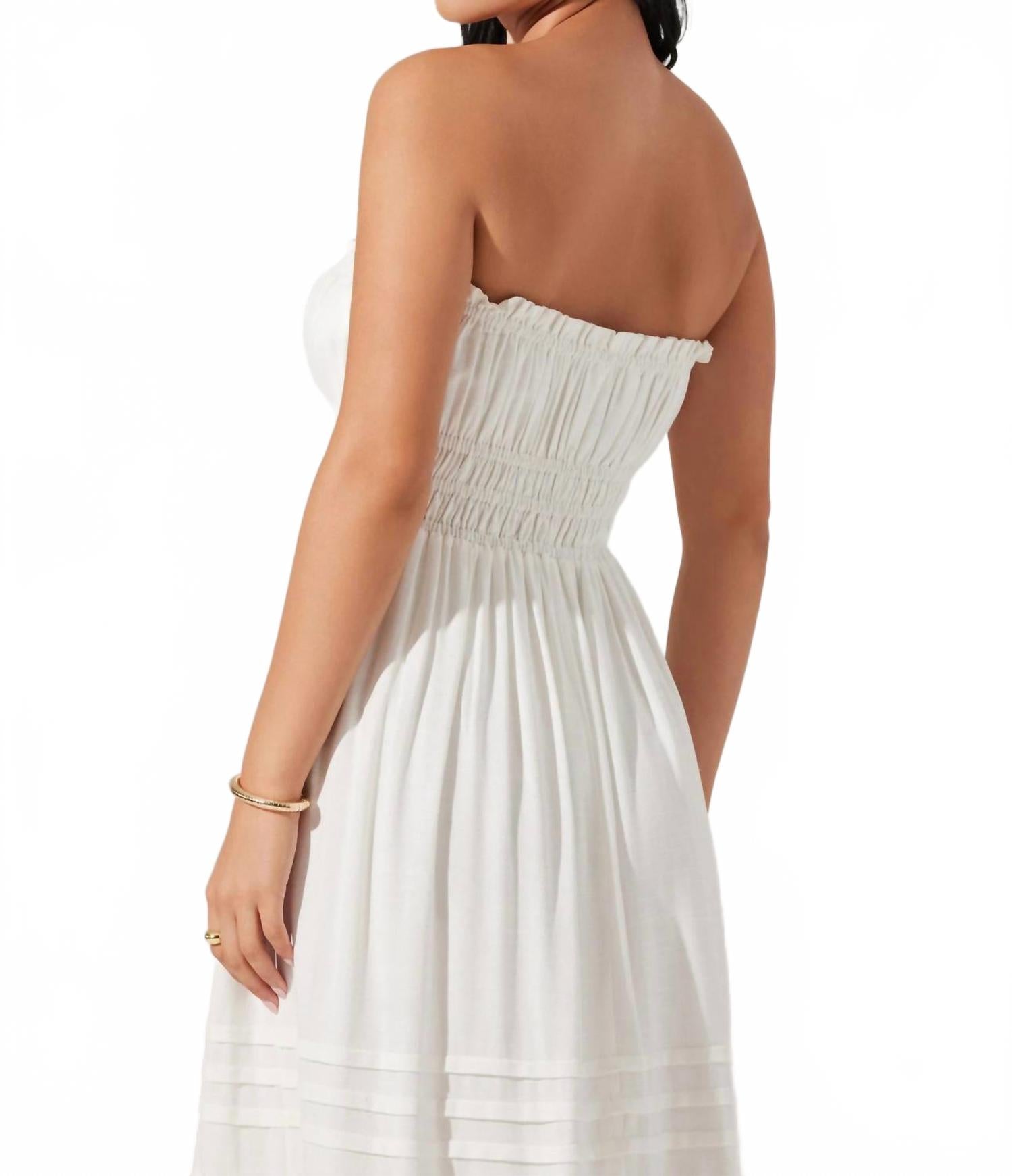Платье Aubrie без бретелей с плиссировкой миди в белом ASTR