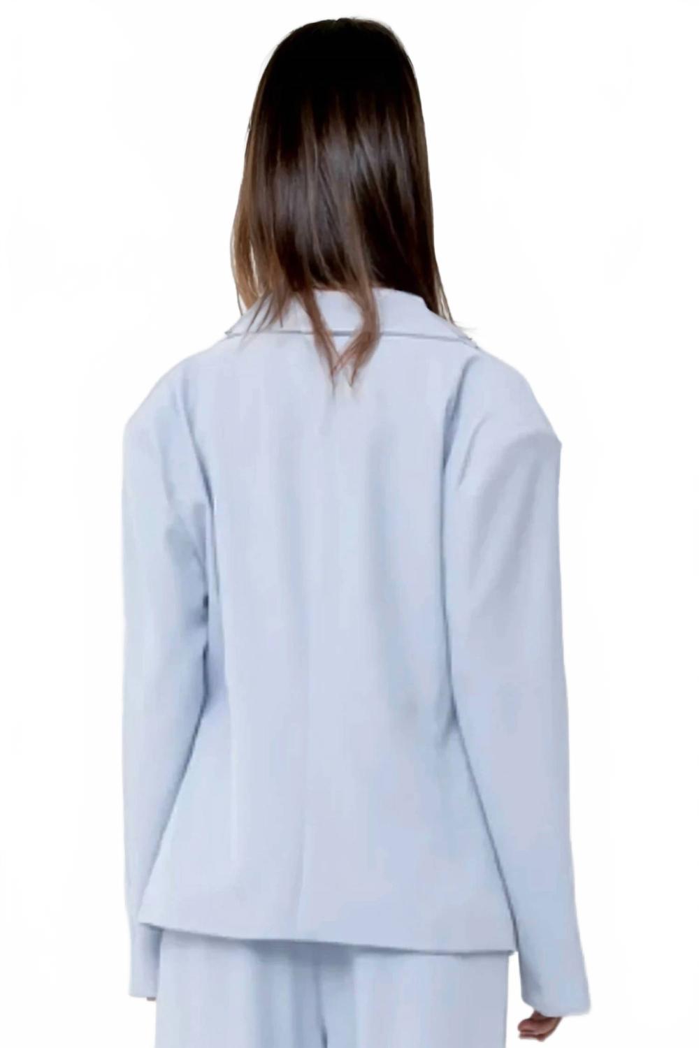 Представляем блейзер Oversize от Pretty Garbage, стильное дополнение к любому гардеробу в освежающем цвете Dusty Blue. Этот элегантный блейзер с длинными рукавами, стильными разрезами и застежкой на пуговицы спереди дополнен удобными подплечниками. Изготовленный из 97% полиэстера на 100% подкладке из спандекса, он имеет изысканный вырез с лацканами и практичные карманы с клапанами спереди. Машинная стирка. Благодаря свободному крою и эффектному разрезу сзади, этот пиджак идеально подходит для повседневного и вечернего образа.